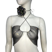 - القماش: مصنوع من نسيج شبكي بوليستر عالي الجودة، يوفر هذا الجزء العلوي التهوية والراحة، مما يضمن لك البقاء هادئًا وواثقًا أثناء الاستمتاع بأشعة الشمس والرقص طوال الليل.