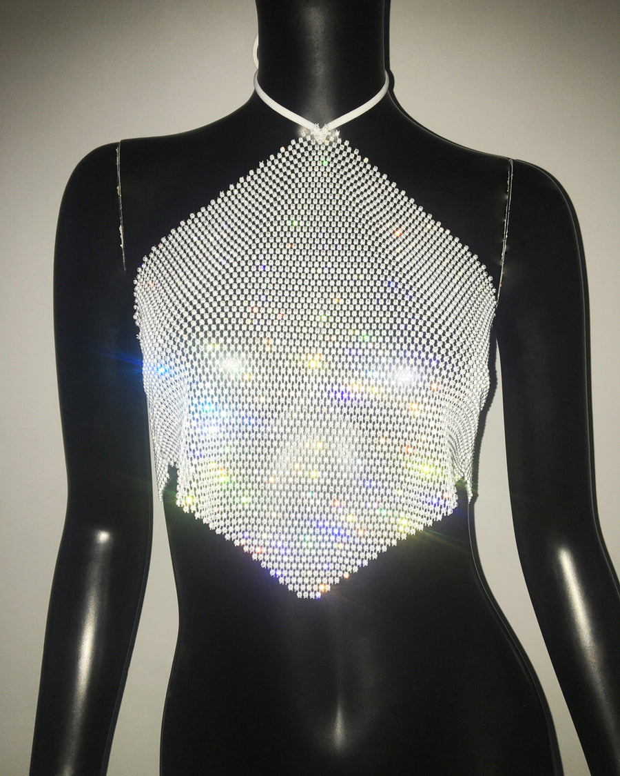 نقدم لك الجزء العلوي من Miriam Mesh المزين بأحجار الراين، وهو إضافة رائعة لخزانة ملابسك الصيفية، وهو مثالي لإضافة لمسة من السحر إلى مجموعاتك المثيرة.