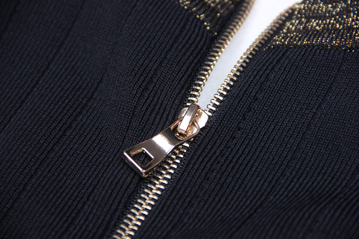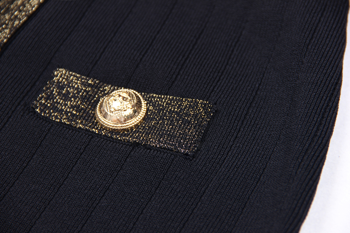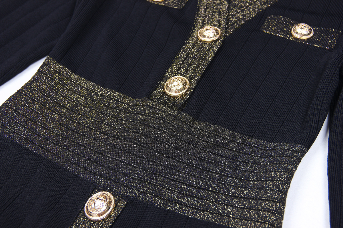 يتميز فستان ناتاليا نيت ميني بمظهر فاخر ومتطور بفضل قصته الضيقة وقماشه المحبوك المضلع وتفاصيله باللونين الأسود والذهبي. ويضفي خط العنق على شكل حرف V والأكمام الطويلة لمسة أنيقة، بينما تجعله عناصر السحاب والجيب والأزرار عمليًا وعصريًا. مثالي لأي حفلة أو نادي أو مناسبة رسمية في الربيع أو الخريف، يتميز هذا الفستان الضيق بالأناقة والحصرية.