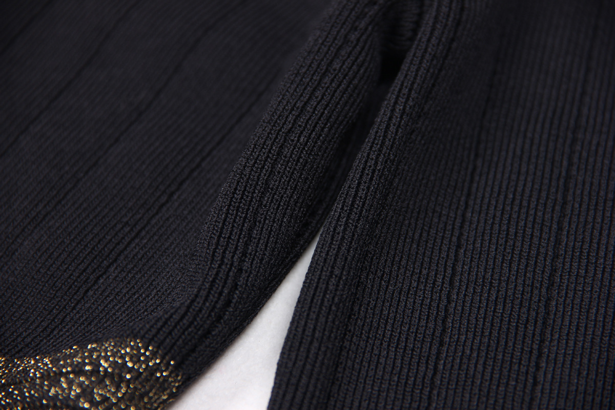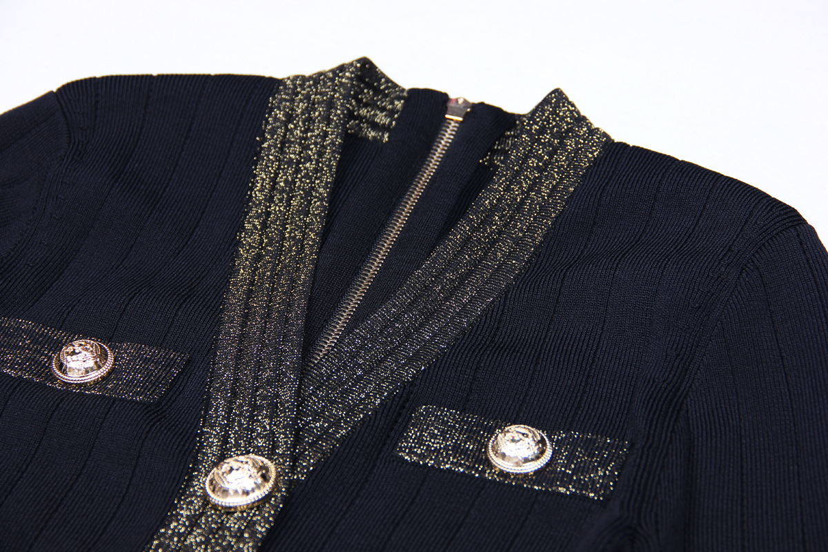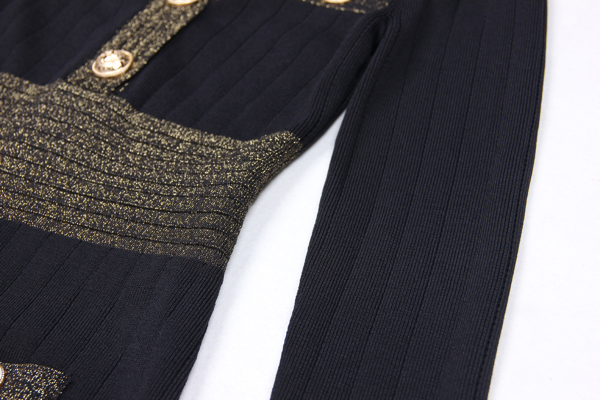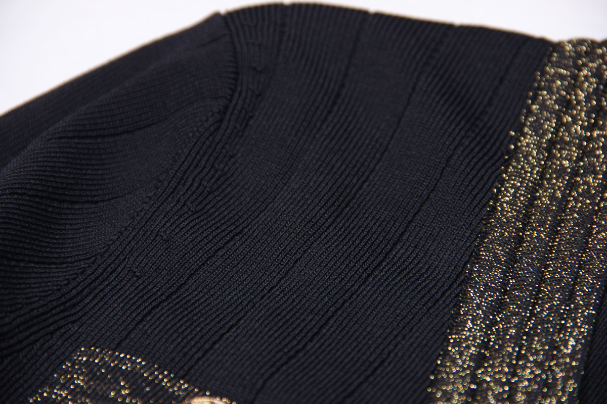 يتميز فستان ناتاليا نيت ميني بمظهر فاخر ومتطور بفضل قصته الضيقة وقماشه المحبوك المضلع وتفاصيله باللونين الأسود والذهبي. ويضفي خط العنق على شكل حرف V والأكمام الطويلة لمسة أنيقة، بينما تجعله عناصر السحاب والجيب والأزرار عمليًا وعصريًا. مثالي لأي حفلة أو نادي أو مناسبة رسمية في الربيع أو الخريف، يتميز هذا الفستان الضيق بالأناقة والحصرية.