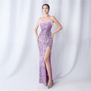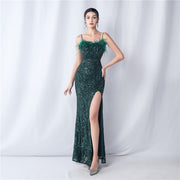 - هل تبحثين عن فستان يتسم بالقدر المناسب من المرح؟ لا تبحثي أبعد من فستان كورين ماكسي! يتميز هذا الفستان الأنيق بقصّة نحيفة، مصنوع من قماش البوليستر ومزين بالريش والترتر. يضيف العنصر المنقسم لمسة فريدة، بينما تجعله الأشرطة الرفيعة والتصميم بدون أكمام مثاليًا لأي مناسبة. بالإضافة إلى ذلك، فهو فستان ماكسي وفستان كامي وفستان ضيق في آن واحد! سواء كان حدثًا رسميًا أو مجرد ليلة في الخارج، فإن هذا الفستان مثالي لأي موسم.