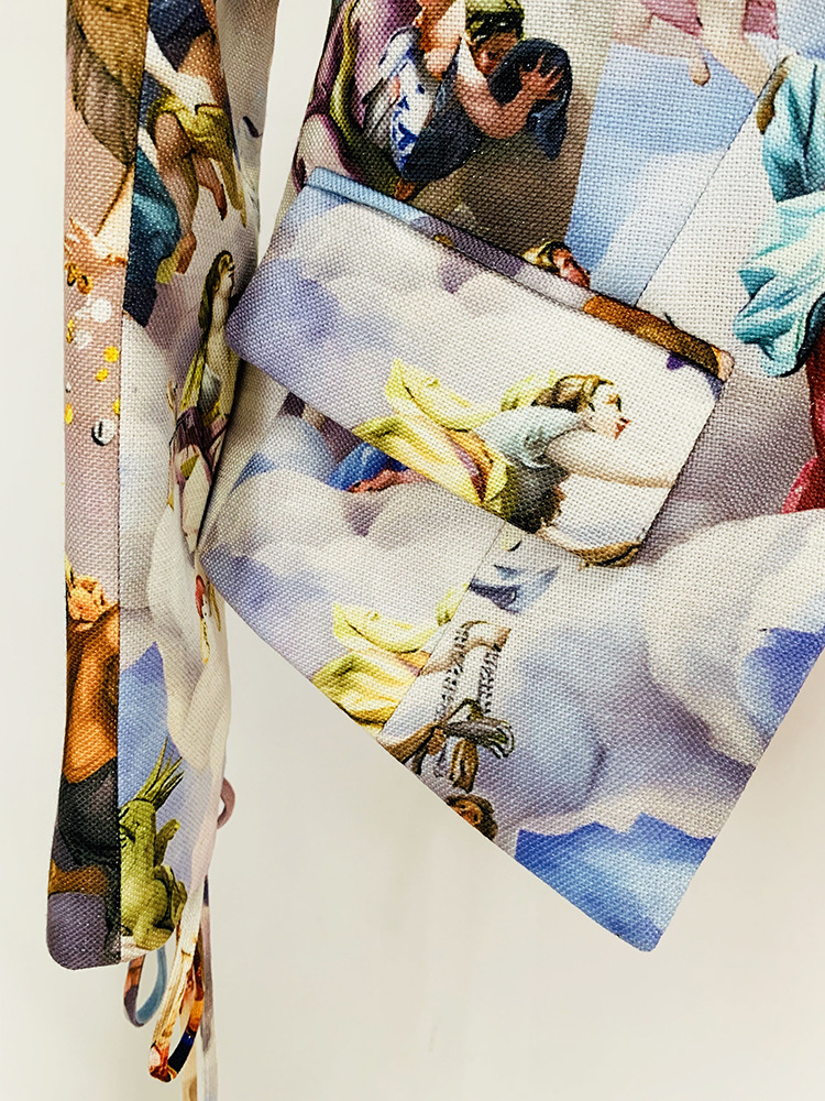 - احصلي على إطلالة أنيقة واحترافية مع سترة جاليليو، فهي مثالية للعمل أو الحفلات الفاخرة. تتميز هذه السترة الضيقة بقماش قطني بنمط مطبوع فريد من نوعه سيجعلك تبرزين بالتأكيد. كما تتميز بلمسة مرحة مع تفاصيل الأزرار والأربطة، وطول قصير لإطلالة أنيقة. يضيف الإغلاق ذو الصف الواحد لمسة من الأناقة إلى هذه السترة، وهي مثالية لأي مناسبة في الربيع أو الخريف.