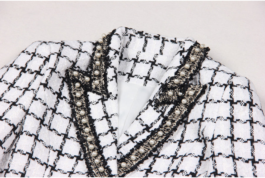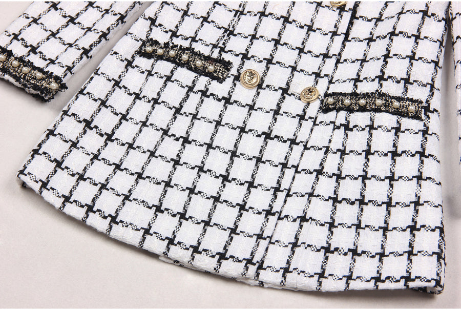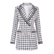تمتعي بالرقي والتميز مع سترة Gia Tweed Blazer، التي تتميز بنقشة مربعات كلاسيكية وإغلاق مزدوج الصدر. صُنعت هذه السترة الطويلة من قماش تويد عالي الجودة، وتتميز بالأناقة وهي مثالية للمكتب خلال فصلي الربيع والخريف. أكملي المظهر بتفاصيل الأزرار والجيوب المريحة.