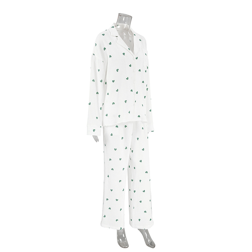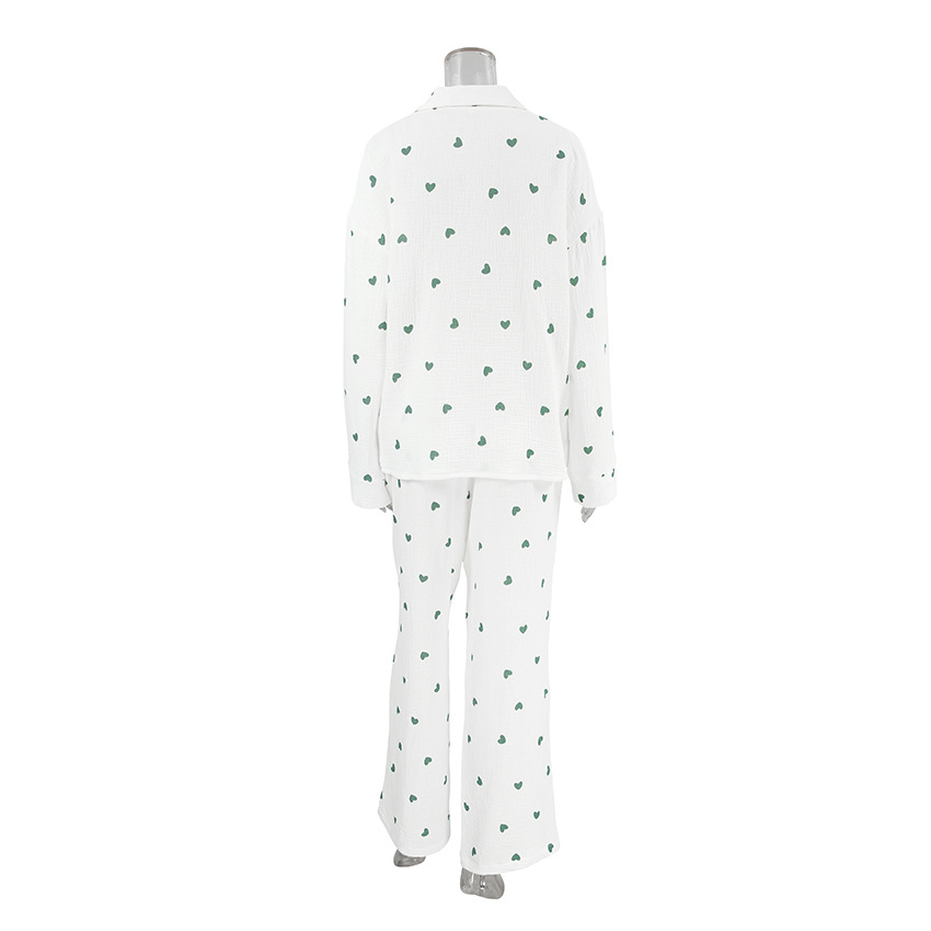 - استمتع بالراحة الفاخرة التي توفرها لك مجموعة Heart Lounge، المثالية للأفراد الأنيقين والمتطورين. تم تصميم هذه المجموعة ذات المقاس العادي من القطن الفاخر، وتتميز بنقشة قلب رقيقة وتفاصيل أنيقة للأزرار والجيوب وأكمام طويلة لمزيد من الدفء. توفر السراويل الطويلة أقصى درجات الراحة، مما يجعل هذه المجموعة مثالية لفصلي الربيع والخريف. ارتقِ بخزانة ملابسك بهذه المجموعة الحصرية والأنيقة، المصنوعة من أجود أنواع القطن.