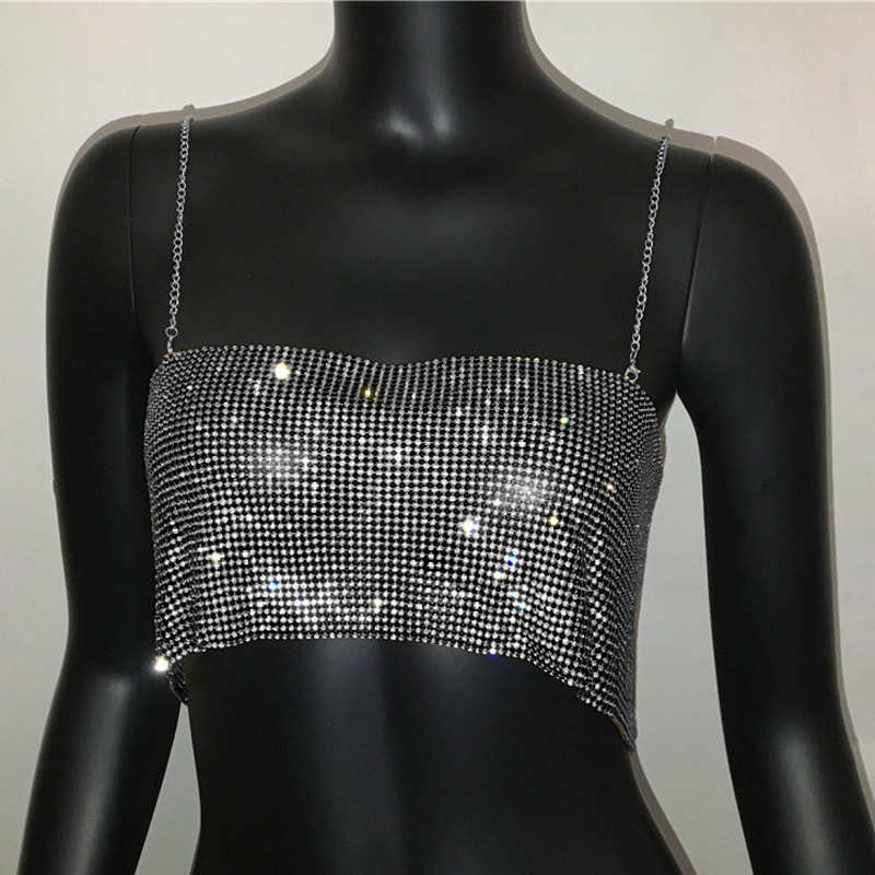 - استعدي للتألق بهذا القميص الداخلي ذي المقاس العادي والملائم للمهرجانات. مصنوع من قماش فريد ويتميز بتصميم بدون نقش، ومن المؤكد أن هذا القميص سيلفت الأنظار. مزين بأحجار الراين ويتميز بظهر مكشوف وتفاصيل من الدانتيل/التول/شبكة صيد السمك، كما يتميز هذا القميص بسلسلة معدنية مرحة. الطول القصير والأشرطة الرفيعة يجعله مثاليًا للصيف. مصنوع من لمسة من الألياف المعدنية، من المؤكد أن هذا القميص الداخلي سيترك انطباعًا رائعًا.