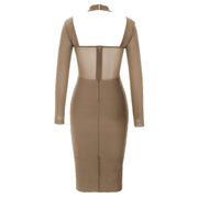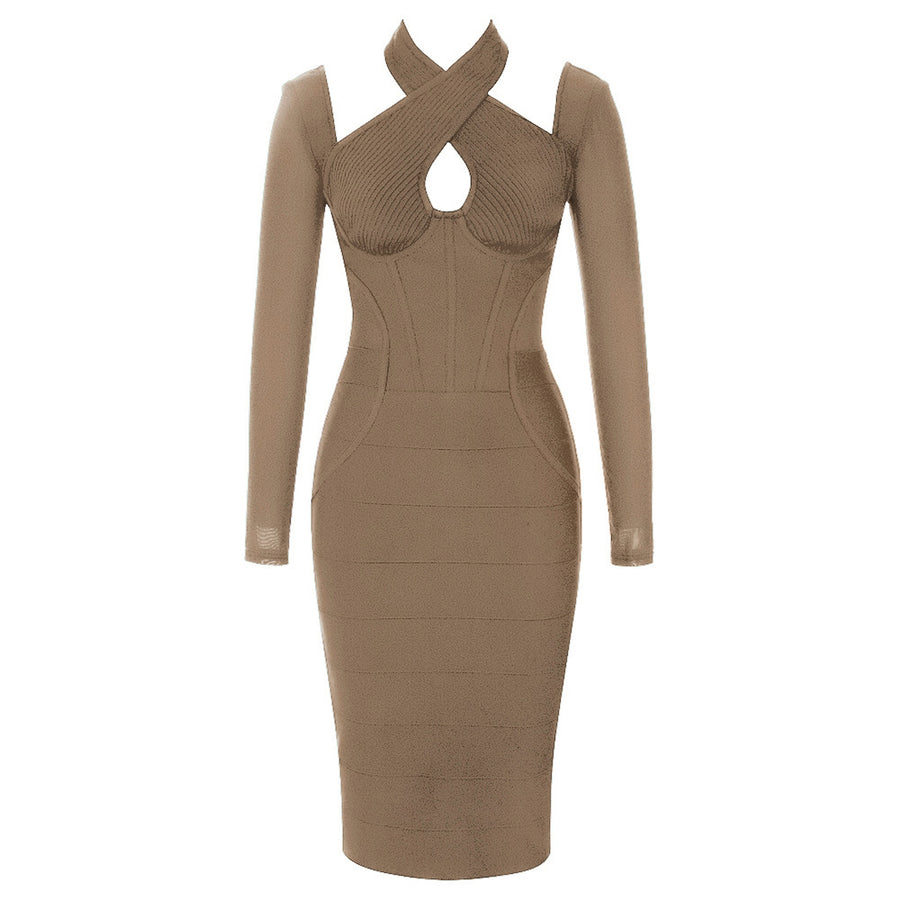 يتميز هذا الفستان بقصته الضيقة ومصنوع من قماش البوليستر عالي الجودة، ويتميز بنمط متين مذهل وعناصر مختلفة مثل التصميم بدون ظهر، والعظام، وتفاصيل الفتحات، والدانتيل الرقيق والتول. يتميز هذا الفستان بفتحة وسحاب على الظهر، وياقة بدون أكمام وأكمام طويلة منتظمة لإطلالة راقية. مثالي لأي مناسبة رسمية، هذا الفستان الضيق متوسط الطول ومناسب لفصلي الربيع والخريف. مصنوع في الأساس من البوليستر، هذا الفستان ضروري لأي شخص مواكب للموضة.