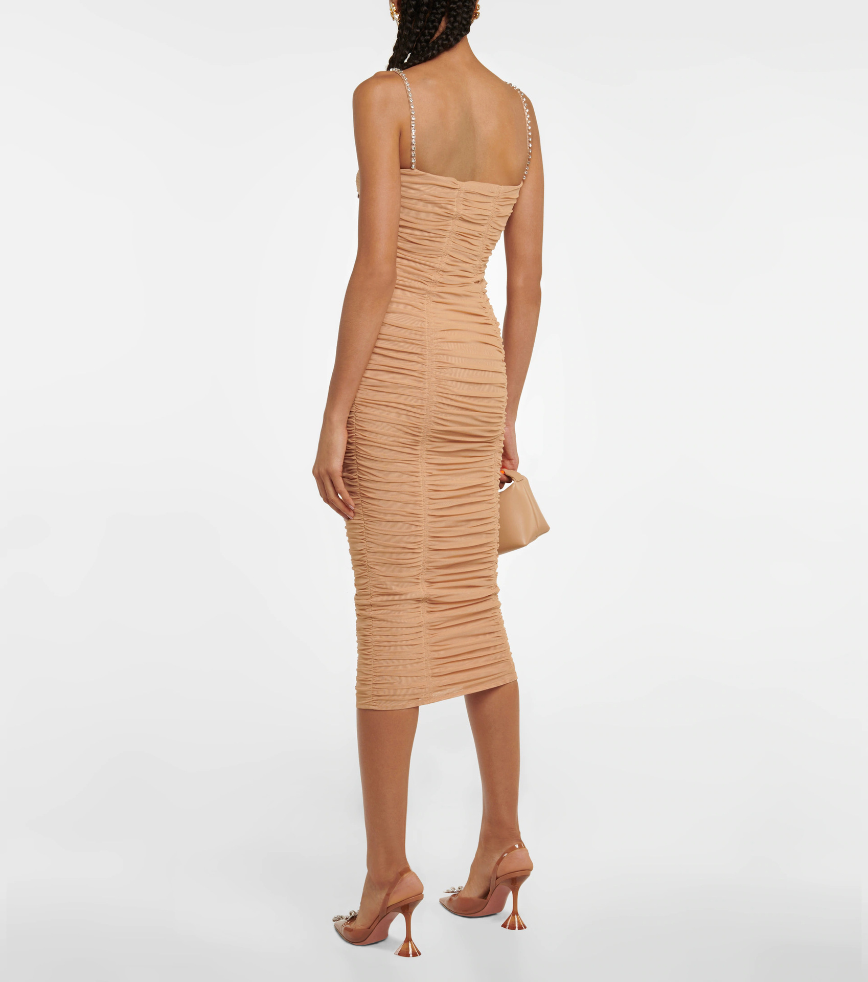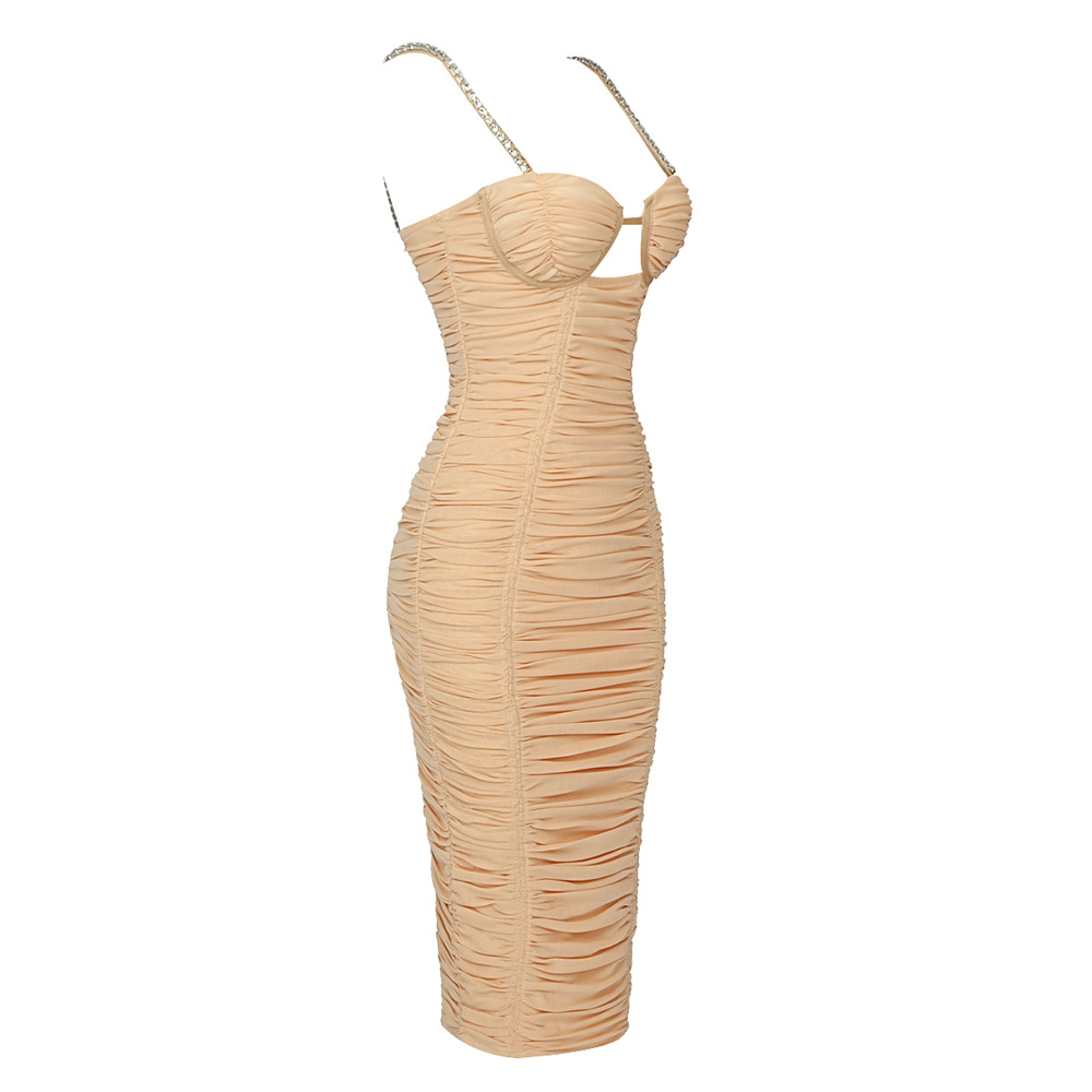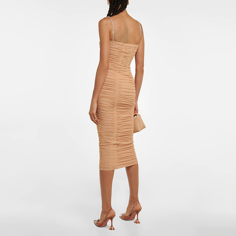 - Look chic and sleek in the Araceli Midi Dress! With its slim fit and playful Mesh fabric, this stylish dress features gorgeous Lace/Tulle/Fishnet detailing, cute Cutouts, and sparkling Rhinestone accents. The Spaghetti Straps add a flirty touch, while the Sleeveless design keeps you cool and comfortable. Perfect for any formal occasion, this Seasonless dress falls at a trendy Midi length. Made from high-quality Polyester, this dress is sure to become a staple in your wardrobe.