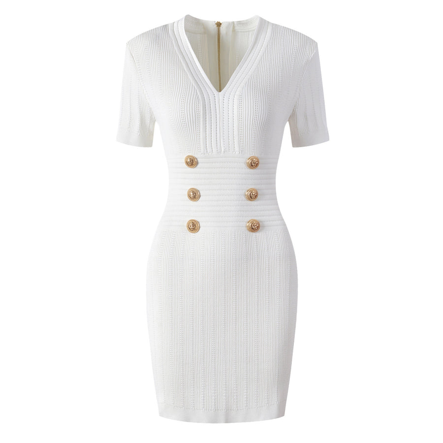 Knit with high quality threads in a flattering bodycon fit and available in classic black or white, it's the perfect dress for that special occasion. Complete your look with a pair of heels and statement jewelry.