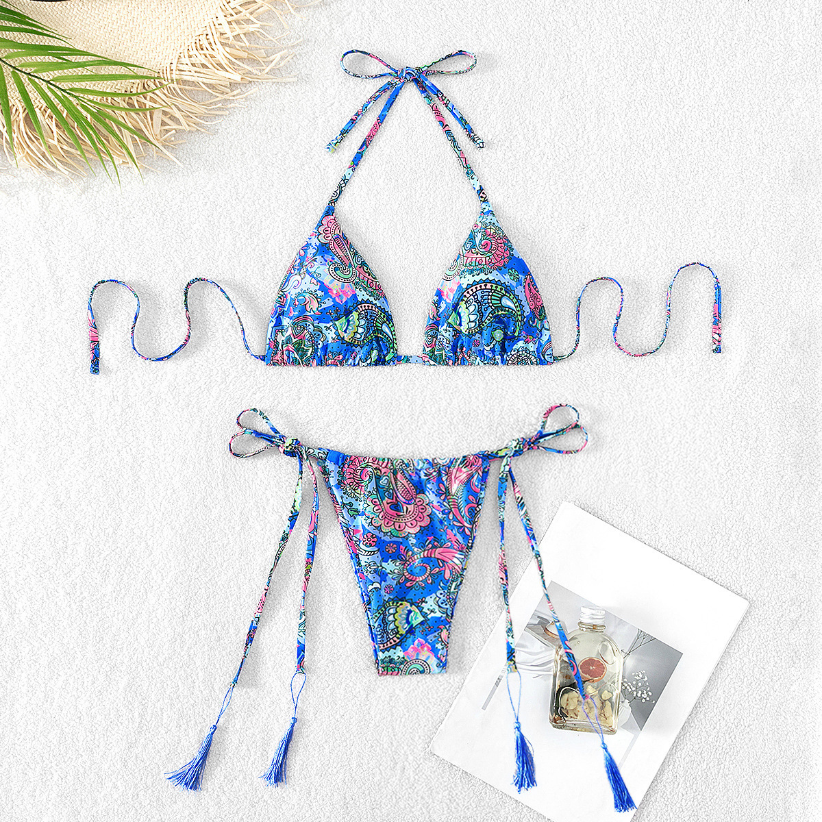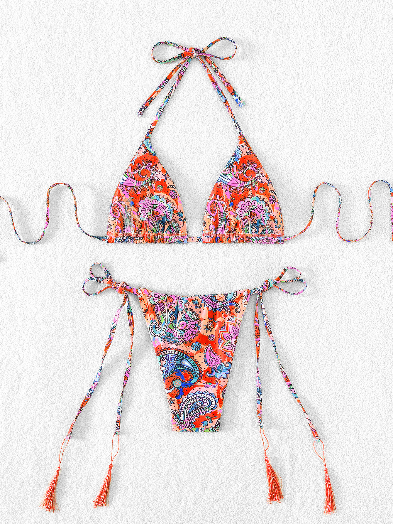 - Introducing the Elani Bikini. Made from premium polyester fabric, this bikini showcases a beautiful paisley pattern and features a halter strap with a stylish tie element. Perfect for the summer season, this bikini exudes elegance and sophistication.