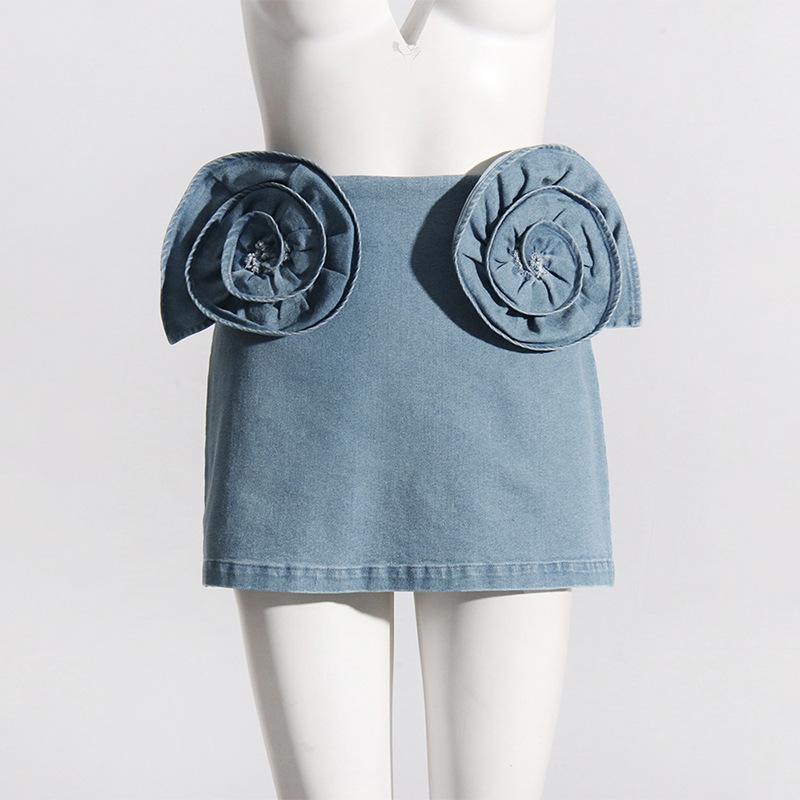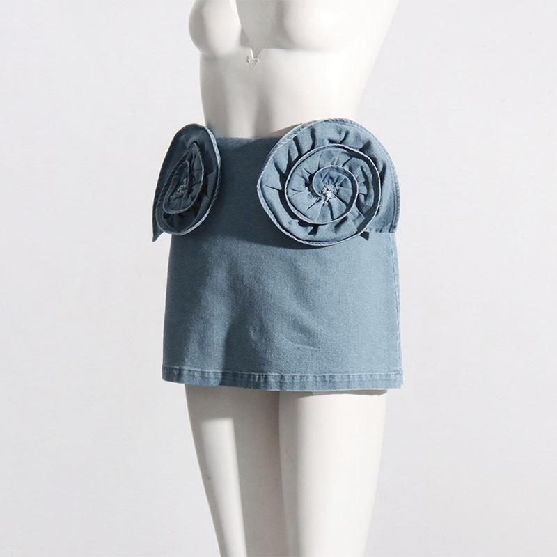 Experience elegance with our 3D Rose Denim Mini Skirt. Designed for a slim fit and crafted from high quality denim, this skirt boasts a solid pattern and exquisite details such as a 3D decoration and zipper. The A-line silhouette and high rise add a touch of sophistication, making it the perfect addition to your summer wardrobe. Made with premium cotton, this skirt is a must-have for any fashion-forward individual. Elevate your style with our luxurious 3D Rose Mini Skirt.