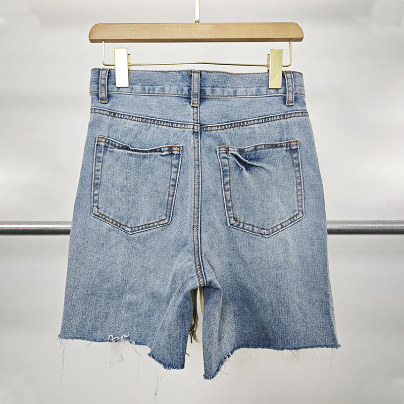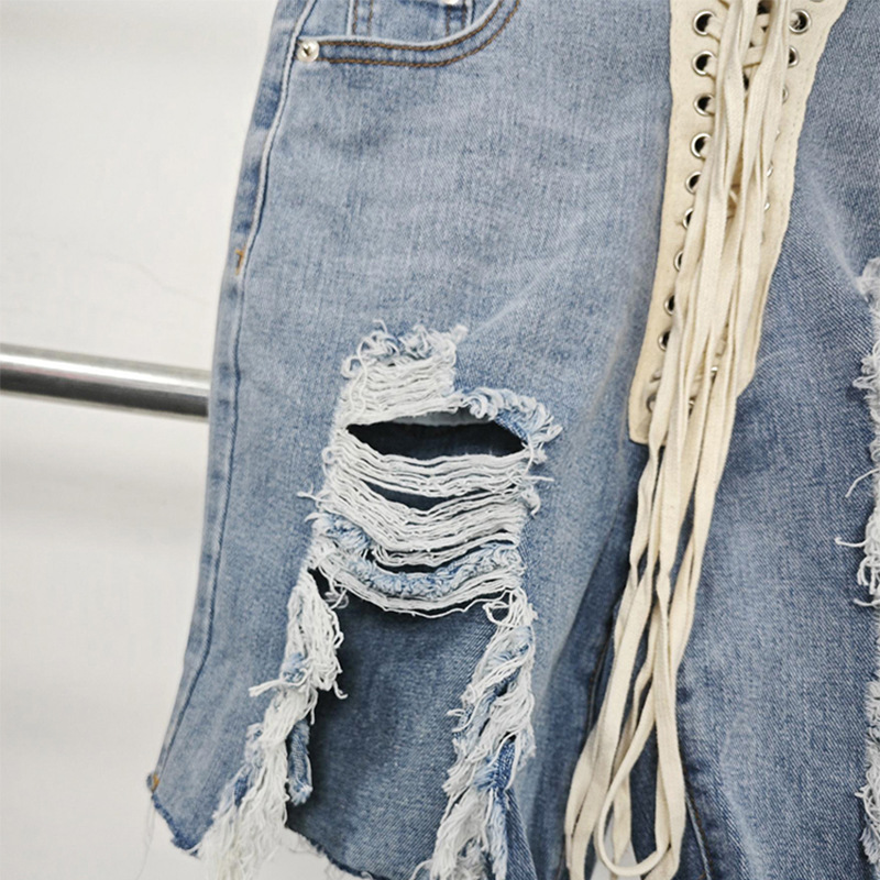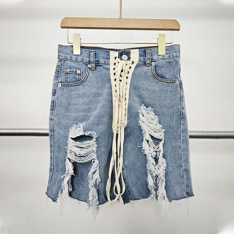 Enhance your casual look with our regular fit High Waist Distressed Denim Shorts. Crafted with premium cotton and featuring a solid pattern, these shorts add a touch of sophistication to your summer wardrobe. The high-rise waist, lace-up detailing, and zipper closure provide a chic and exclusive element. With convenient pockets, these shorts are both stylish and practical for any occasion.