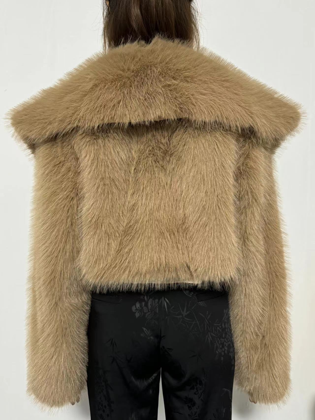 Expertly crafted with loose fit and short length, this Faux Fur Cropped Coat showcases a solid pattern and is made with high-quality polyester. Designed for casual wear in the Fall/Winter season, this coat features a unique closure type and is perfect for those looking to elevate their style with a touch of cozy luxury.