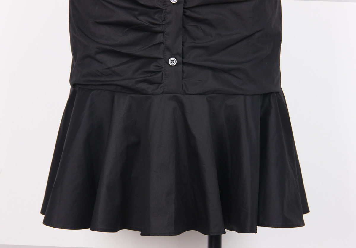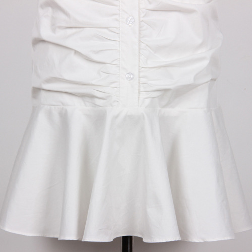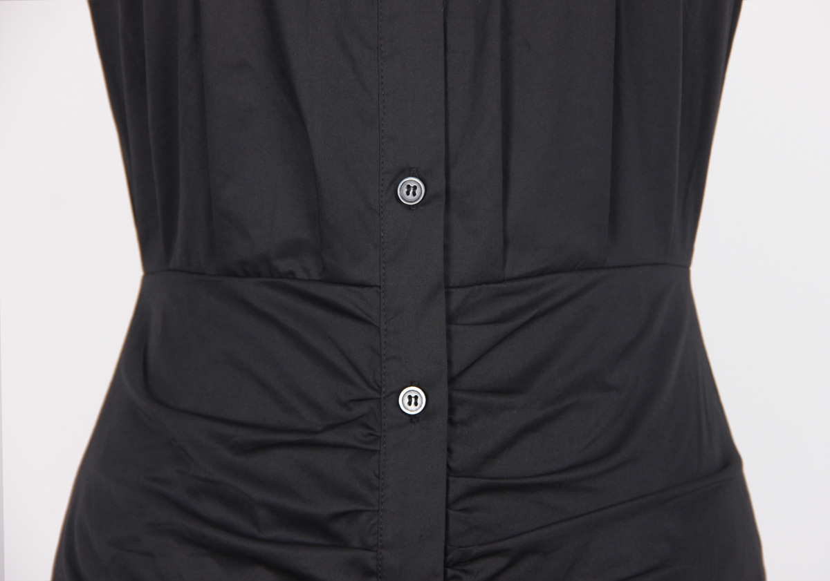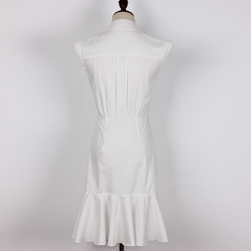 Indulge in sophistication with our Alice Cotton Dress. Designed with a regular fit and made from luxurious cotton, this dress features a solid color and delicate elements such as ruffles, ruching, and a buttoned neckline. The elegant, collared design is complemented by regular sleeves and a sleeveless style, making it suitable for any occasion. With a short, A-line length and high-quality cotton composition, this dress is perfect for the spring, summer, and fall seasons.