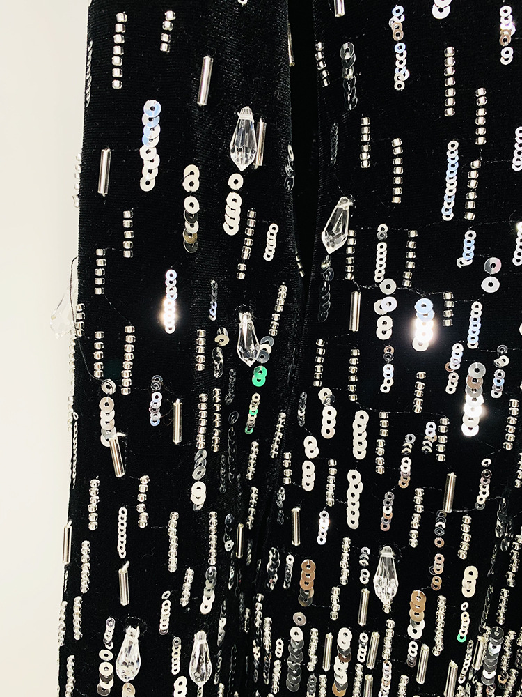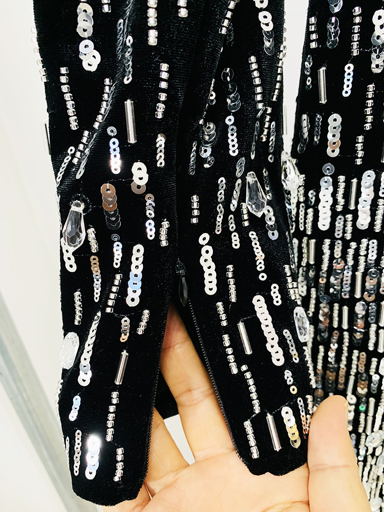Indulge in timeless elegance with our Renata Embellished Sequin Mini Dress. Crafted from luxurious premi cotton blends, this slim fit dress features intricate sequin and beading details, along with a reliable zipper closure. The crew neckline and regular long sleeves add a sophisticated touch, making it perfect for any cocktail event during any season. Embrace sophistication and style with this exquisite bodycon dress, perfect for those who appreciate the finer things in life.
