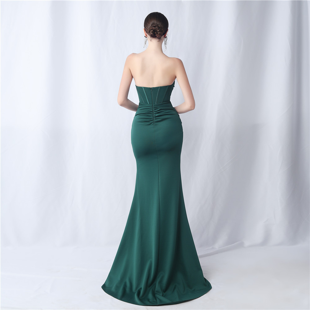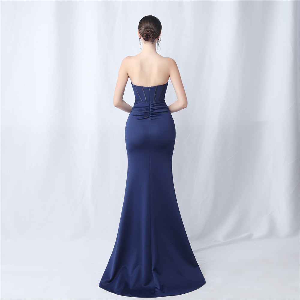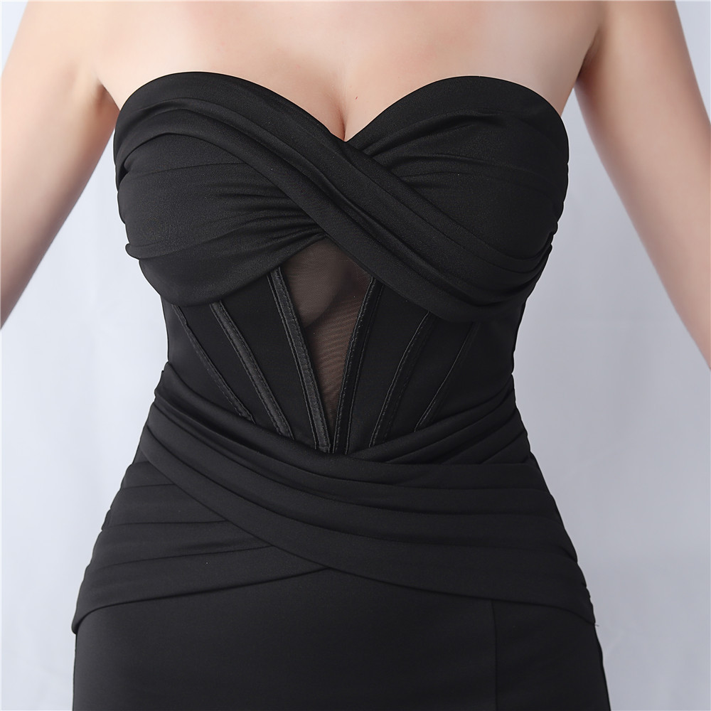 - Revamp your formal style with the Eliana Maxi Dress - a slim fit, polyester bodycon dress with boning and a unique split neckline for a sleek and tailored look. Its strapless design and sleeveless sleeves make it perfect for prom season or any other formal occasion. With its solid pattern and maxi length, this dress is sure to make a statement.