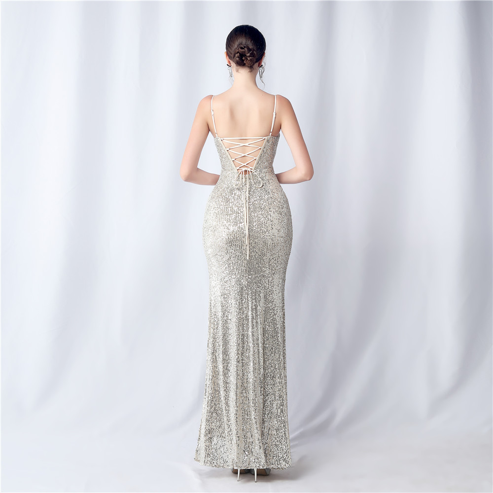 - Introducing the Sexy Colorful Sequin Side Slit Long Strap Evening Dress! This slim fit polyester dress features non-patterned elements like boning, cutouts, a lace up back, a side slit, and a zipper. The spaghetti straps and sleeveless design add even more style to this cami maxi dress, making it perfect for any formal occasion. Plus, the polyester fabric makes this dress a must-have for your formal prom season looks.
