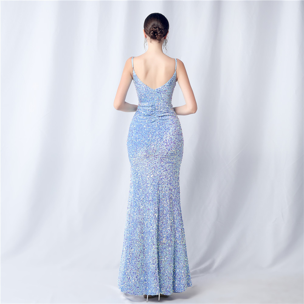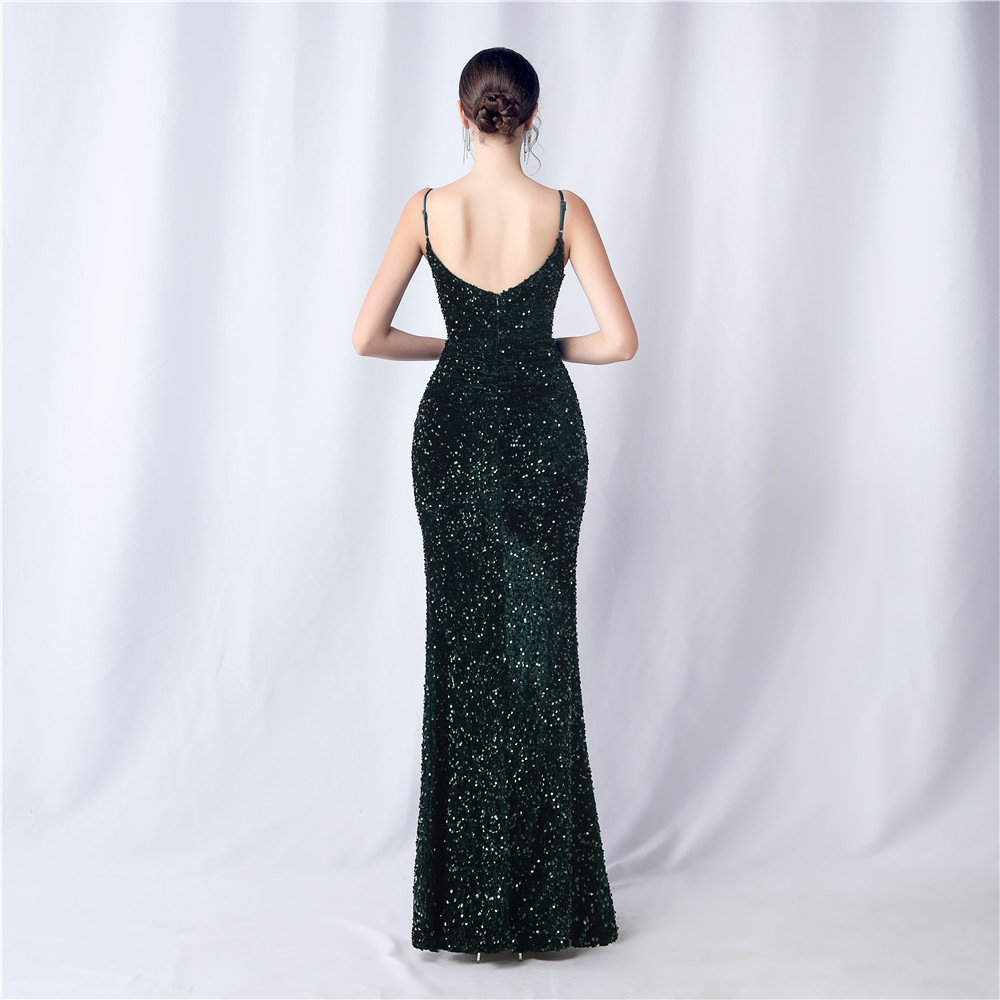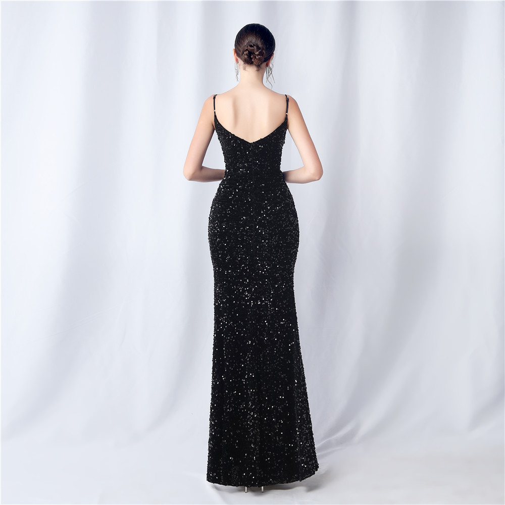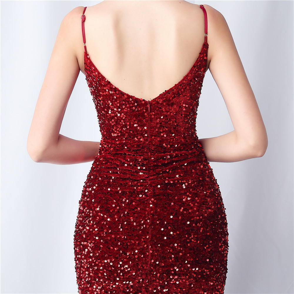 • This dress boasts an elegant design, with a slim fit and made from luxurious polyester fabric. It features a unique combination of fringe and sequin elements, along with a playful split and convenient zipper. The v-neck neckline and sleeveless design add a touch of quirkiness to this versatile split maxi dress. Perfect for any formal occasion, it's the ultimate statement piece.
