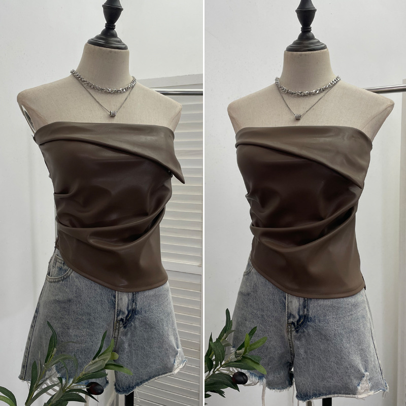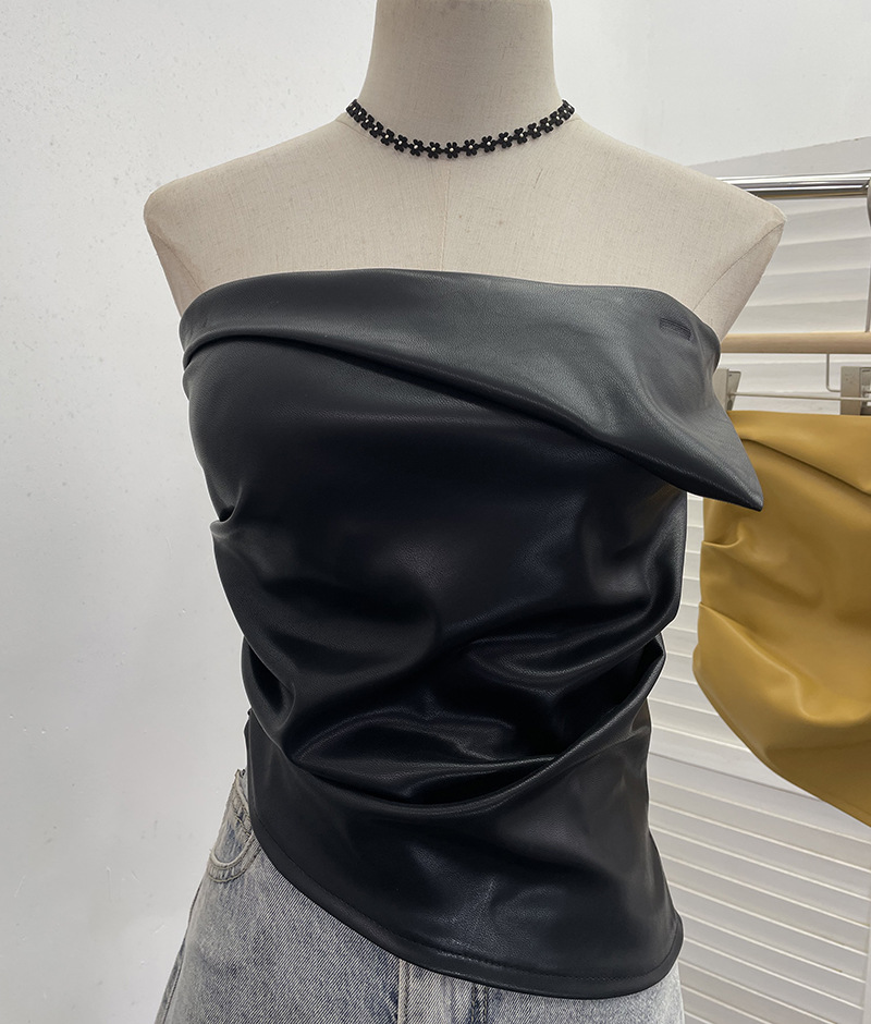Designed for a sleek, alluring look, this Retro Strapless Top is a must-have for any stylish summer wardrobe. Made from high-quality polyester, this top features a solid color pattern and an asymmetric, split design with a zipper and folding element. The short length and strapless neckline make it perfect for warm weather, and it is a versatile addition that can be dressed up or down for any occasion. Suitable for all body types, this tube top is a testament to our expertise in providing fashionable, comfortable and trendy clothing for the summer season.