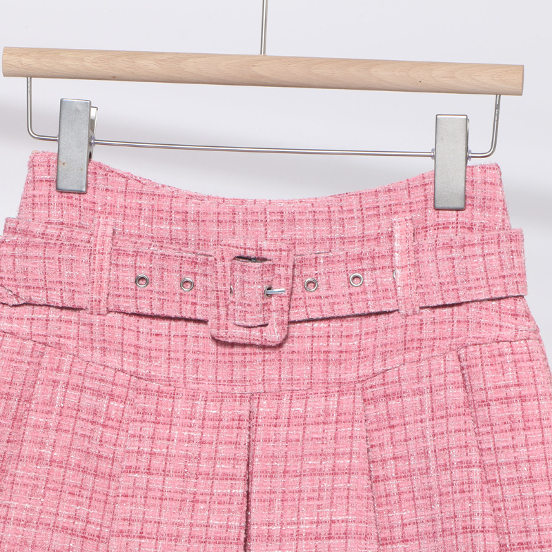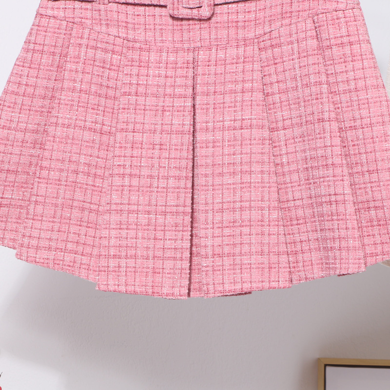 Expertly designed with a classic silhouette, this Basic Tweed Pleated Skirt boasts a sophisticated aesthetic. Crafted from high-quality tweed, this A-line skirt features a belted waist and a convenient zipper closure, making it a versatile addition to any wardrobe. With a high rise and a short length, it's perfect for the summer season.