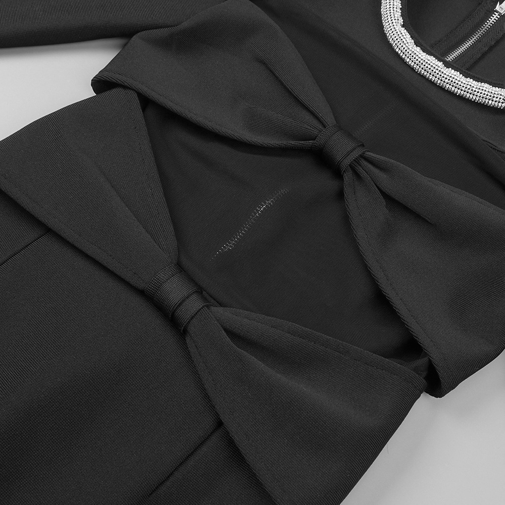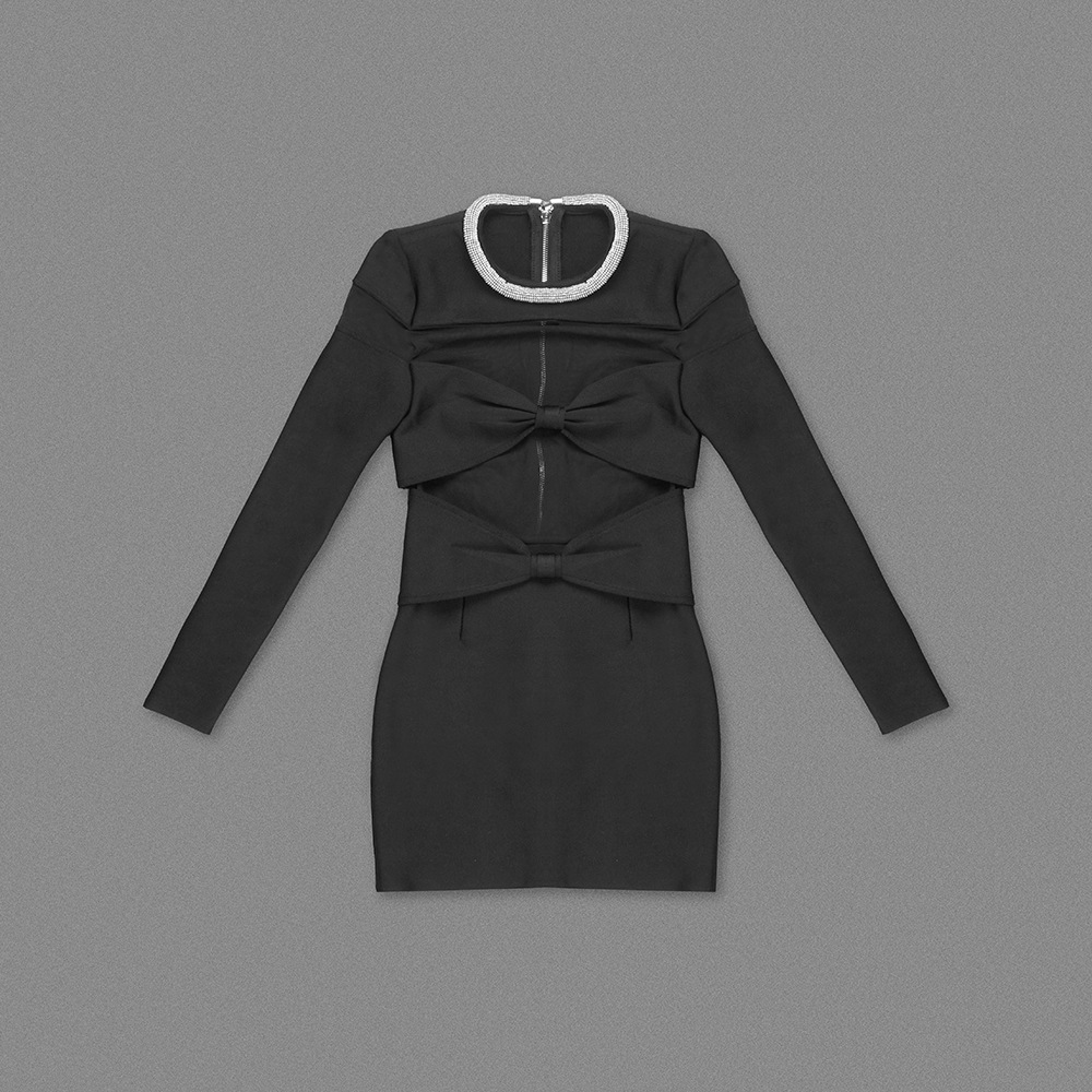 Bow + Mesh Rhinestone Neck Mini Dress