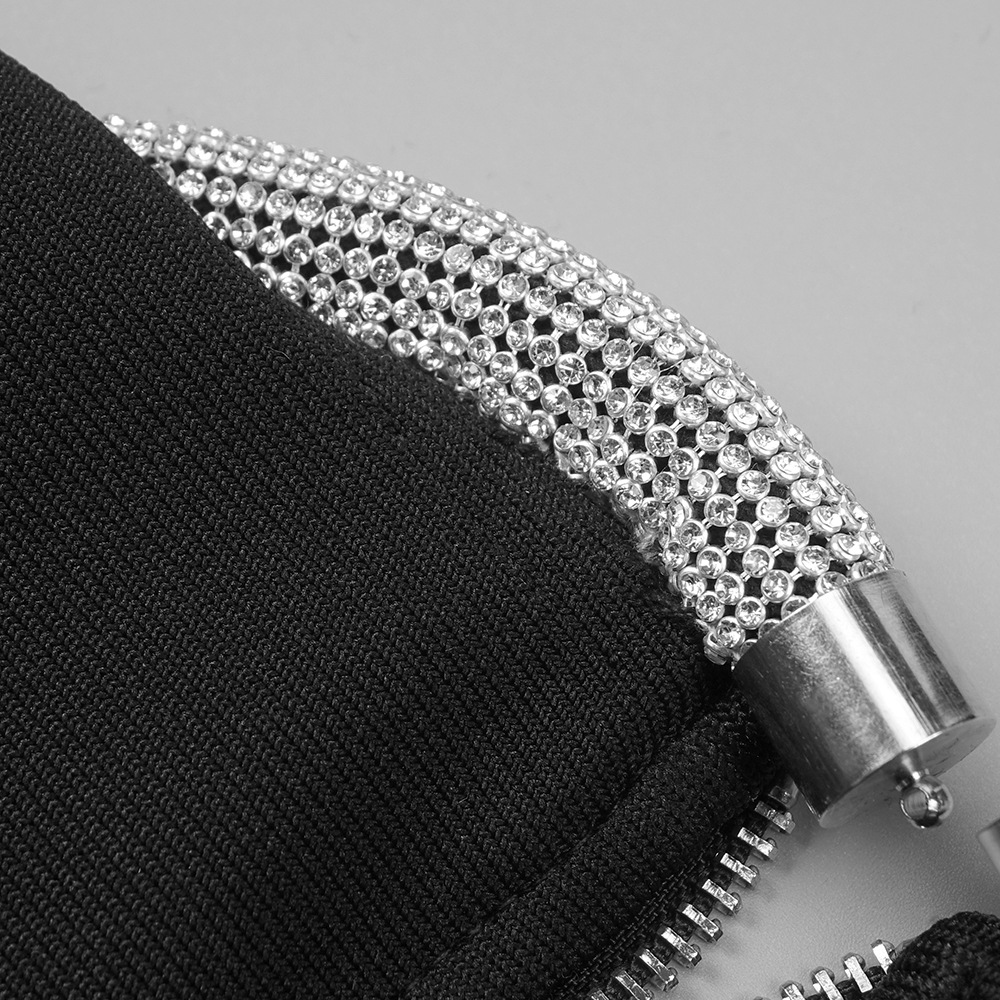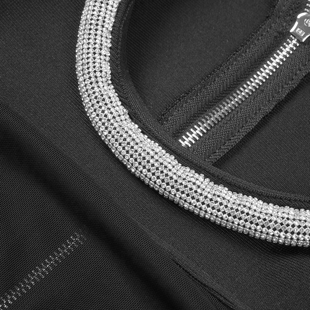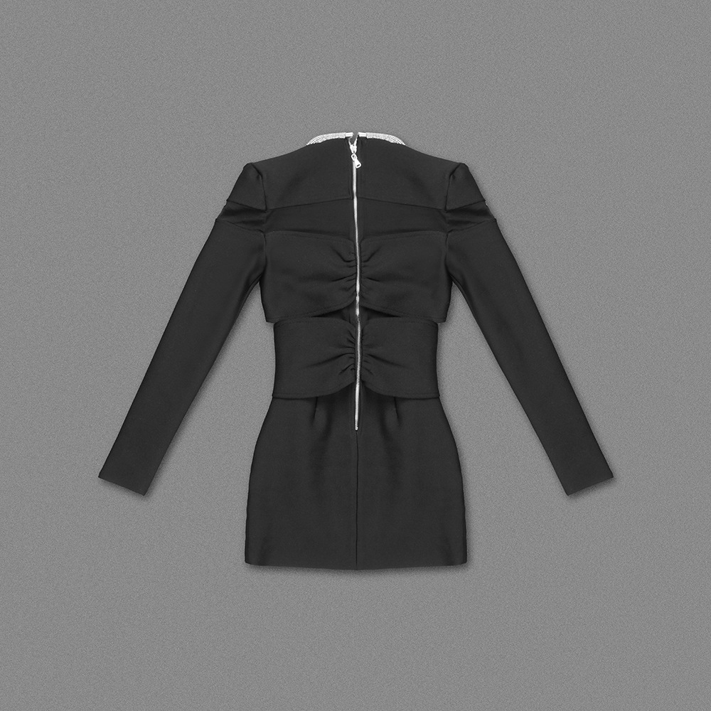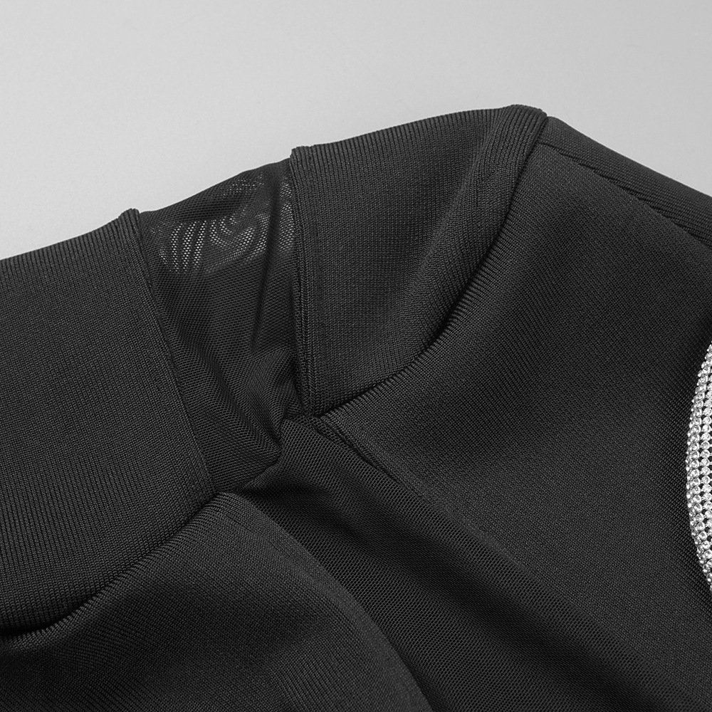 This product is a sexy, slim-fit dress made of Spandex and features a solid pattern with Rhinestone, Lace/Tulle/Fishnet elements. It has a crew neckline, regular sleeves and is a bodycon style with long sleeves. It is suitable for parties and club events, and has a short skirt length. The main fabric composition is Spandex, perfect for the Spring/Fall season.