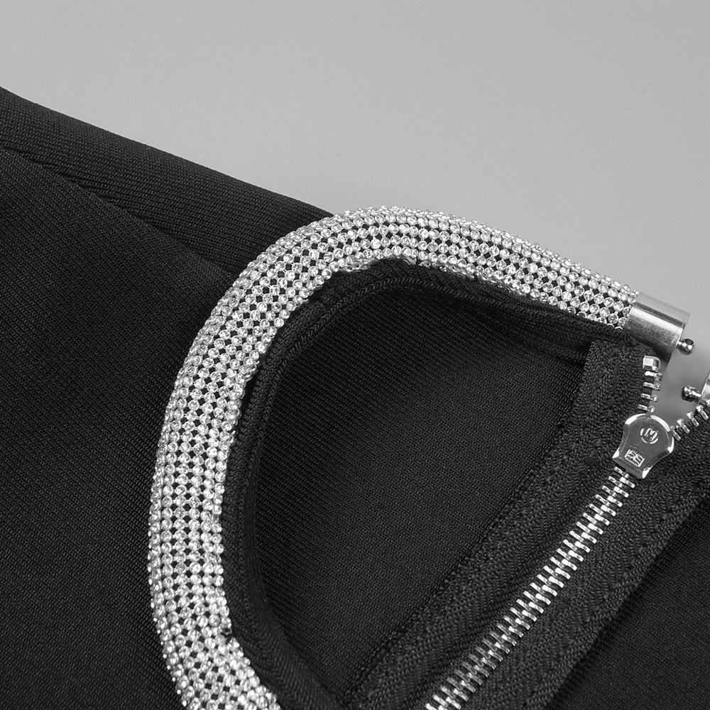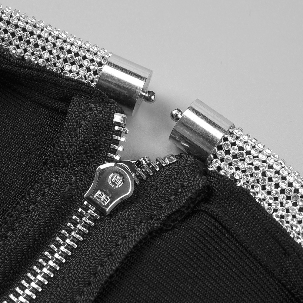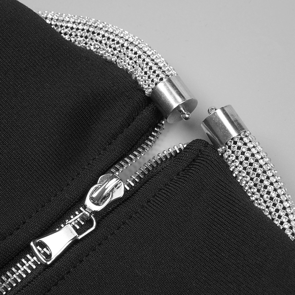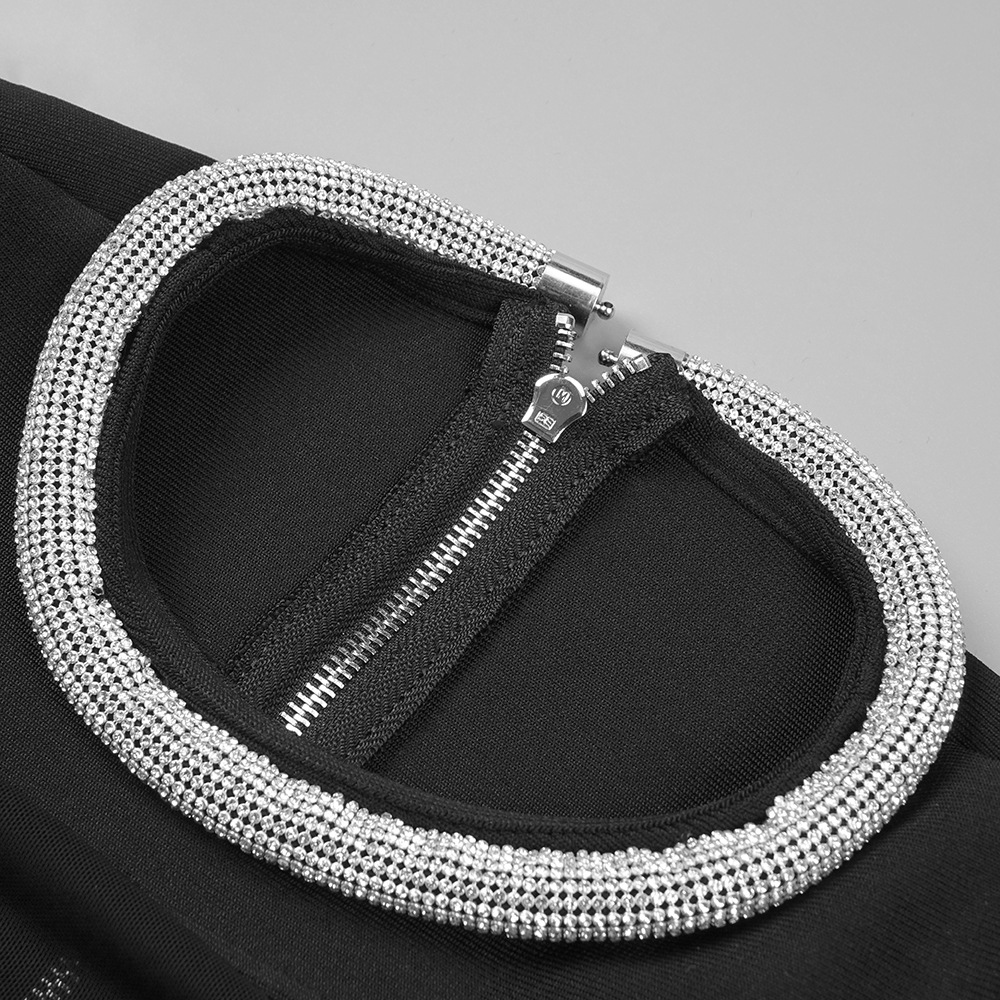 This product is a sexy, slim-fit dress made of Spandex and features a solid pattern with Rhinestone, Lace/Tulle/Fishnet elements. It has a crew neckline, regular sleeves and is a bodycon style with long sleeves. It is suitable for parties and club events, and has a short skirt length. The main fabric composition is Spandex, perfect for the Spring/Fall season.