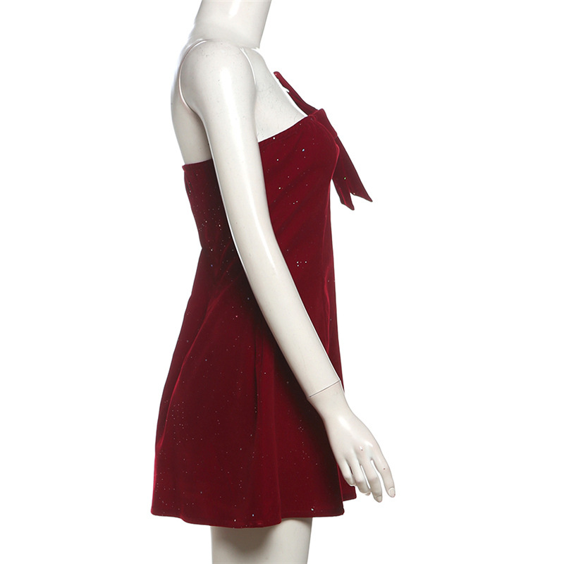 This premium polyester A line dress boasts a slim and sexy fit, with an elegant, asymmetric design featuring a delicate bow and 3D sequin decoration. The sleeveless design and zipper closure add a touch of sophistication to this short summer dress, perfect for party and club occasions. The exclusive and tasteful neckline and sleeve type elevate this dress to a higher level of luxury.
