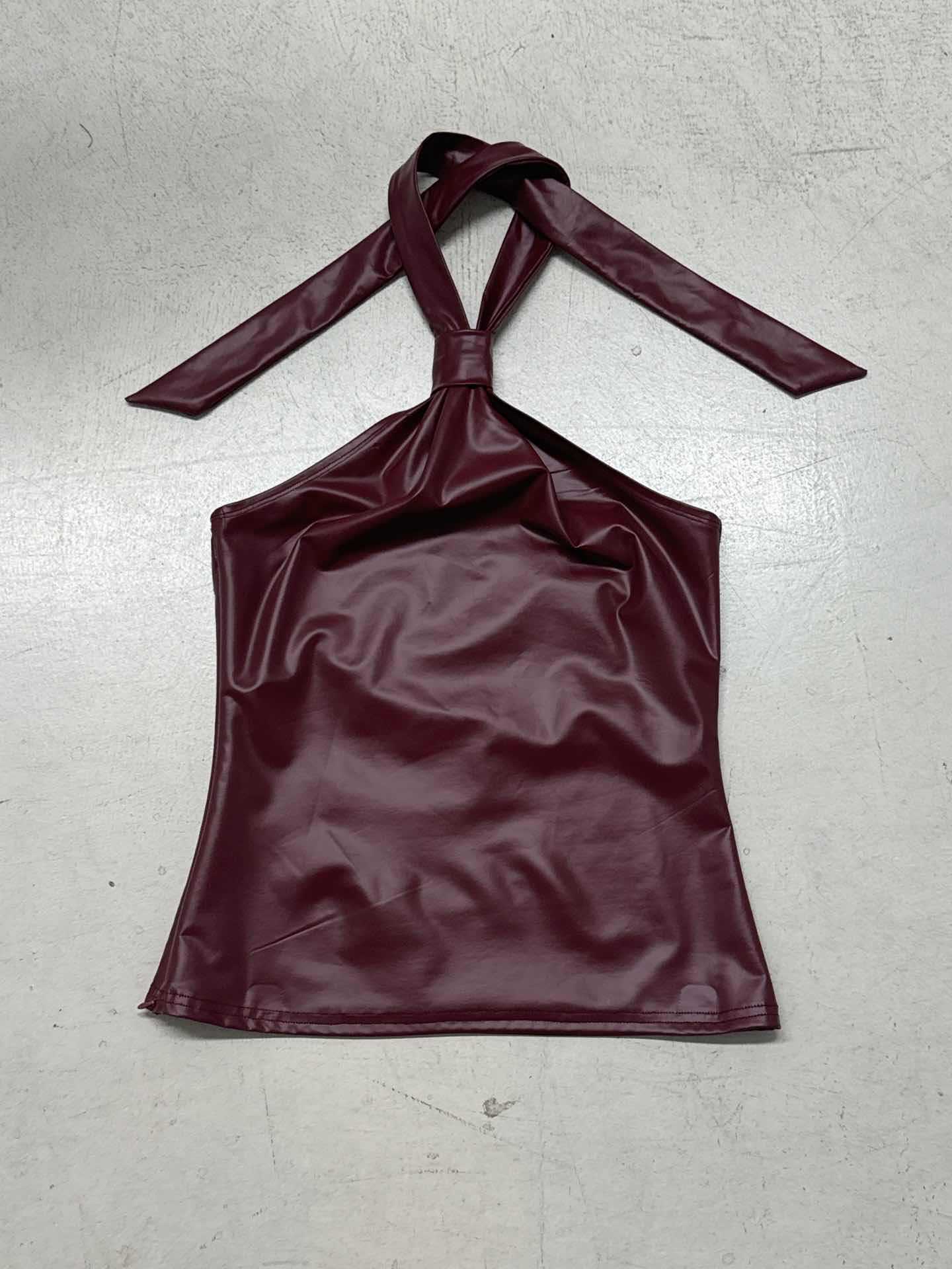 Burgundy Vegan Leather Halter Top