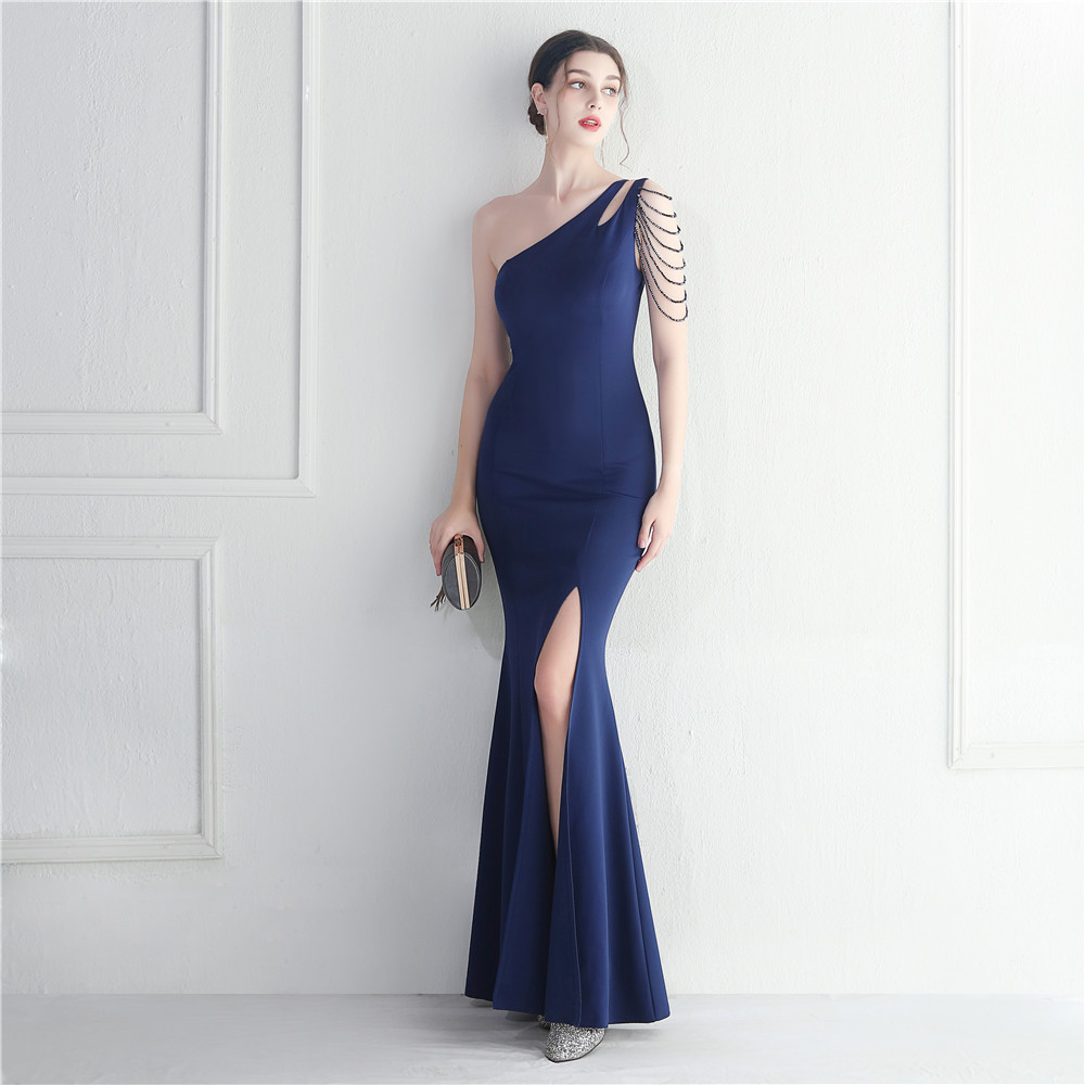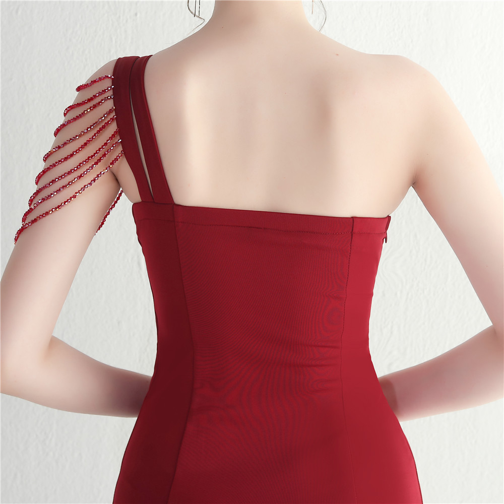 • Be the life of the party in this flirty and elegant maxi dress! Made with a slim fit and featuring a playful one-shoulder neckline, this dress is perfect for any formal occasion. The unique elements of a zipper, asymmetric cutout, rhinestones, and a sexy split make this dress stand out from the rest. Whether you're attending prom or a formal event, this dress will definitely turn heads. Plus, it's made with high-quality polyester fabric to keep you comfortable all season long. Don't miss out on this must-have piece - get your own now!