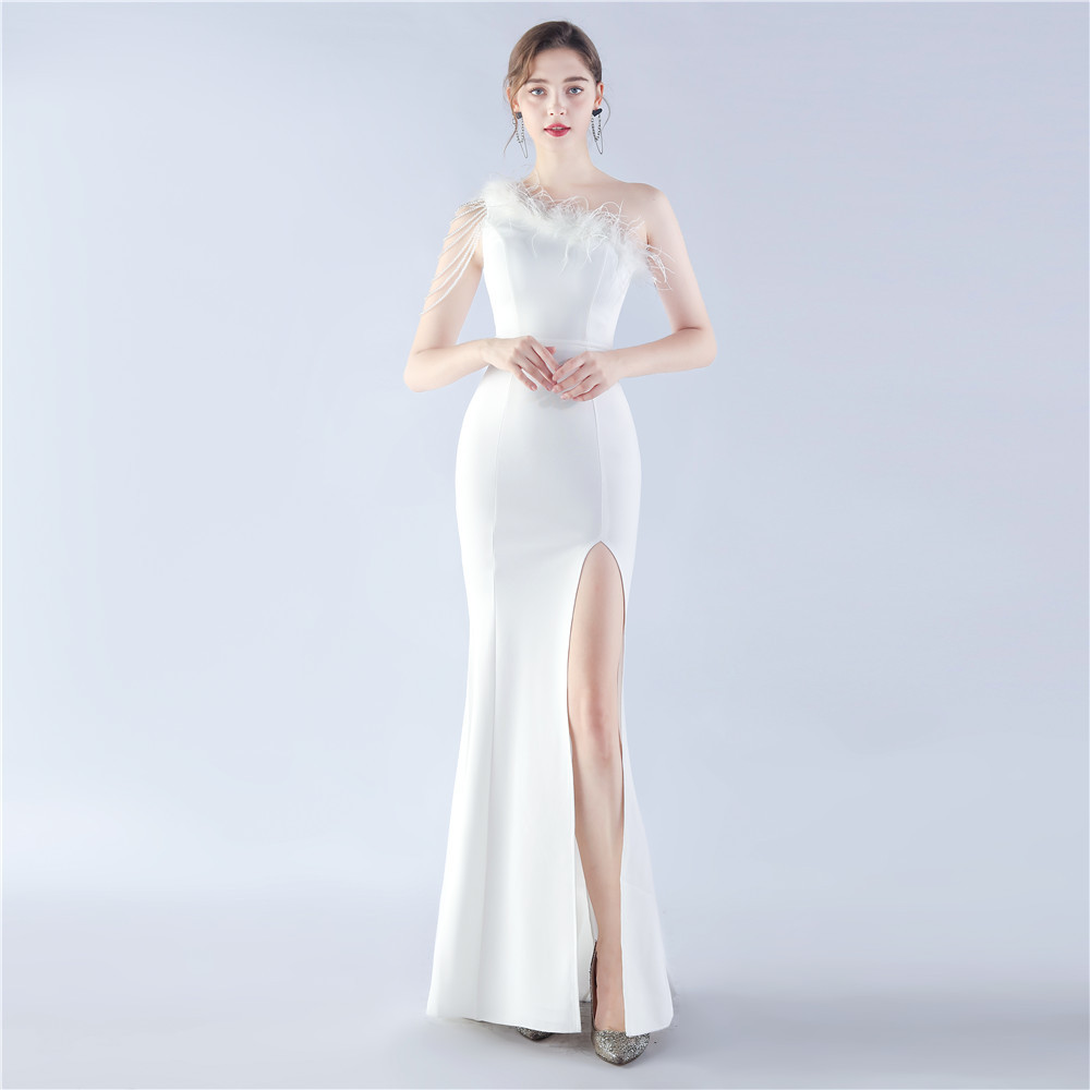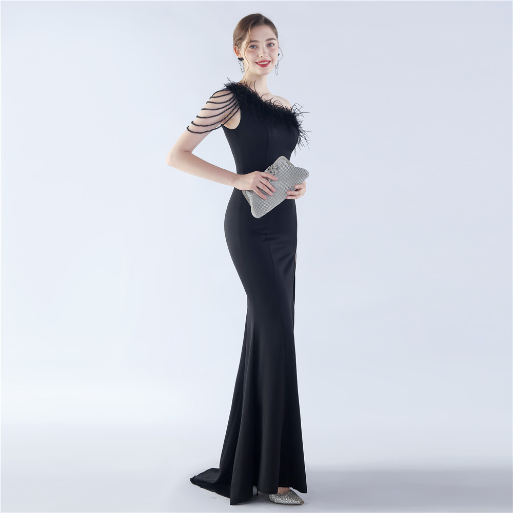 • Sass up your formalwear with our Clara Maxi Dress. This elegant, slim-fit dress features an unconventional one-shoulder neckline, playful feather and zipper elements, and a flirty split design. Made with high-quality polyester fabric, this split dress is perfect for prom or other formal occasions. Embrace your playful side in this quirky, yet stylish, bodycon dress with short sleeves.