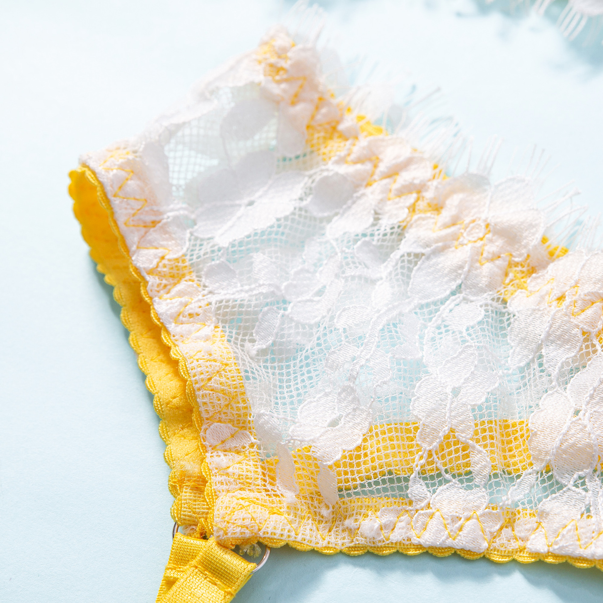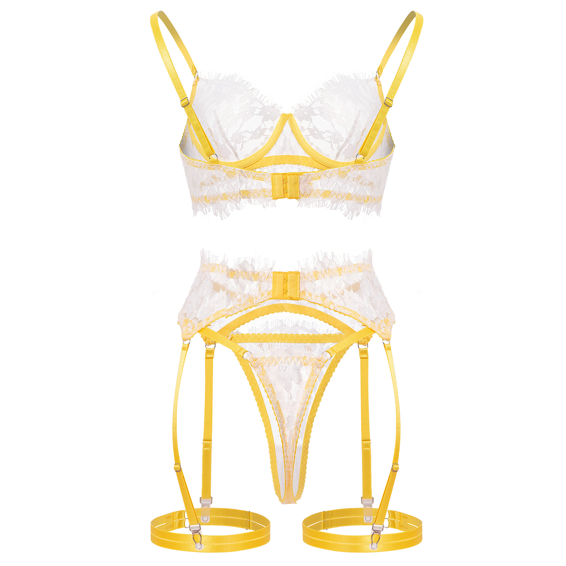 - Crafted from luxurious lace and delicate tulle, this exquisite lingerie set features intricate floral patterns and a stunning fishnet element. Expertly designed for the Fall/Winter season, this set exudes elegance and luxury, perfect for the sophisticated woman who appreciates premium quality.