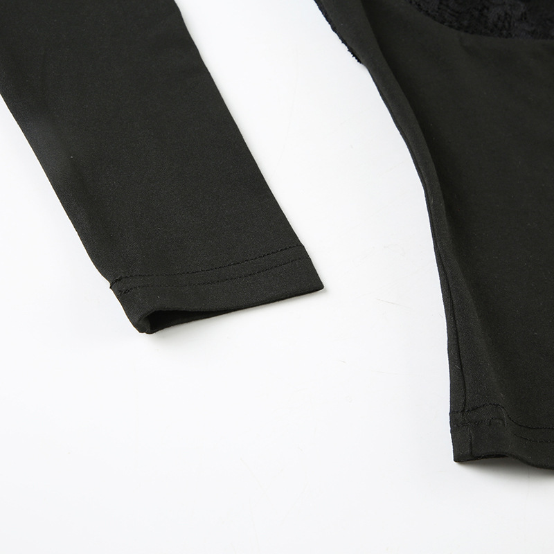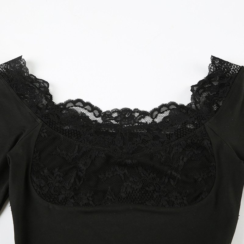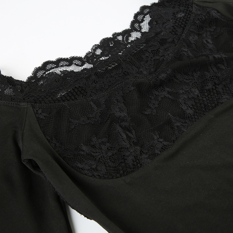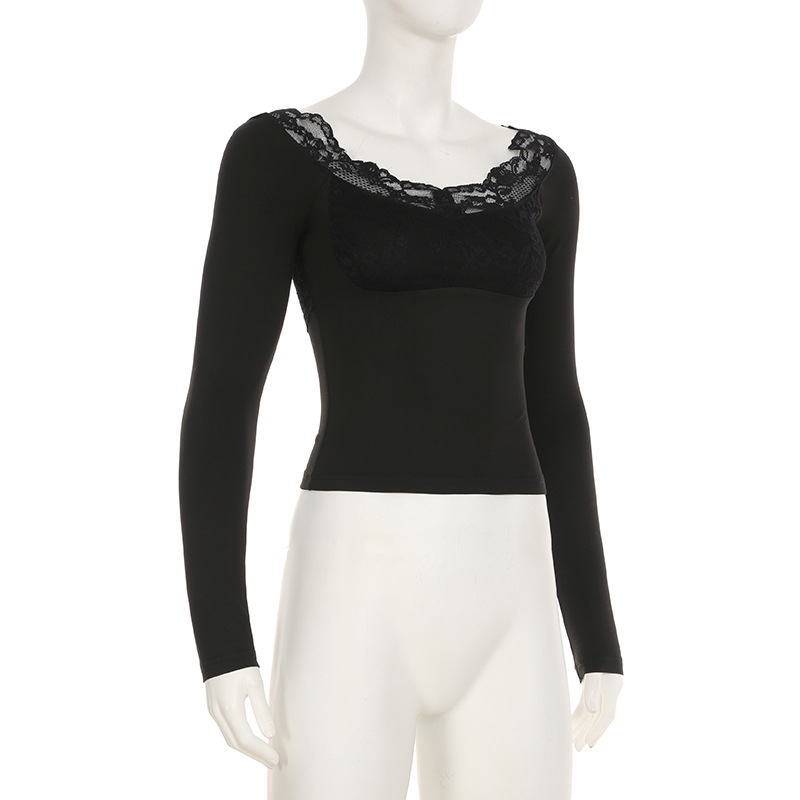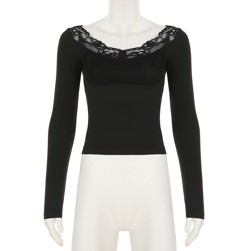 This luxurious Lace Stitched Scoop Longsleeve Top boasts a sultry and sleek design, tailored to a slim fit for a sophisticated silhouette. Crafted from high-quality polyester fabric, its solid pattern features intricate lace, tulle, and fishnet patchwork elements, adding a touch of elegance and allure. The top falls at a short length, with a crew neckline and long, regular sleeves, perfect for the Spring and Fall seasons. Elevate your wardrobe with this premium piece.