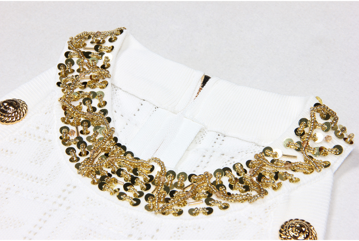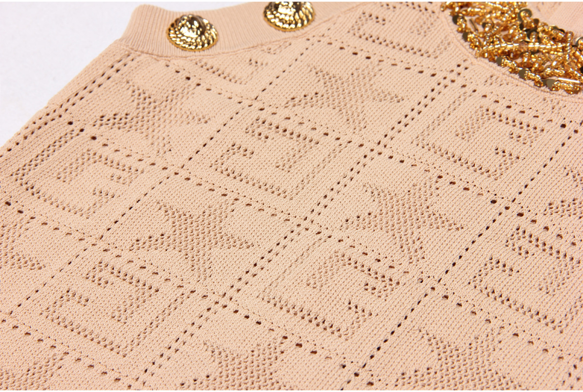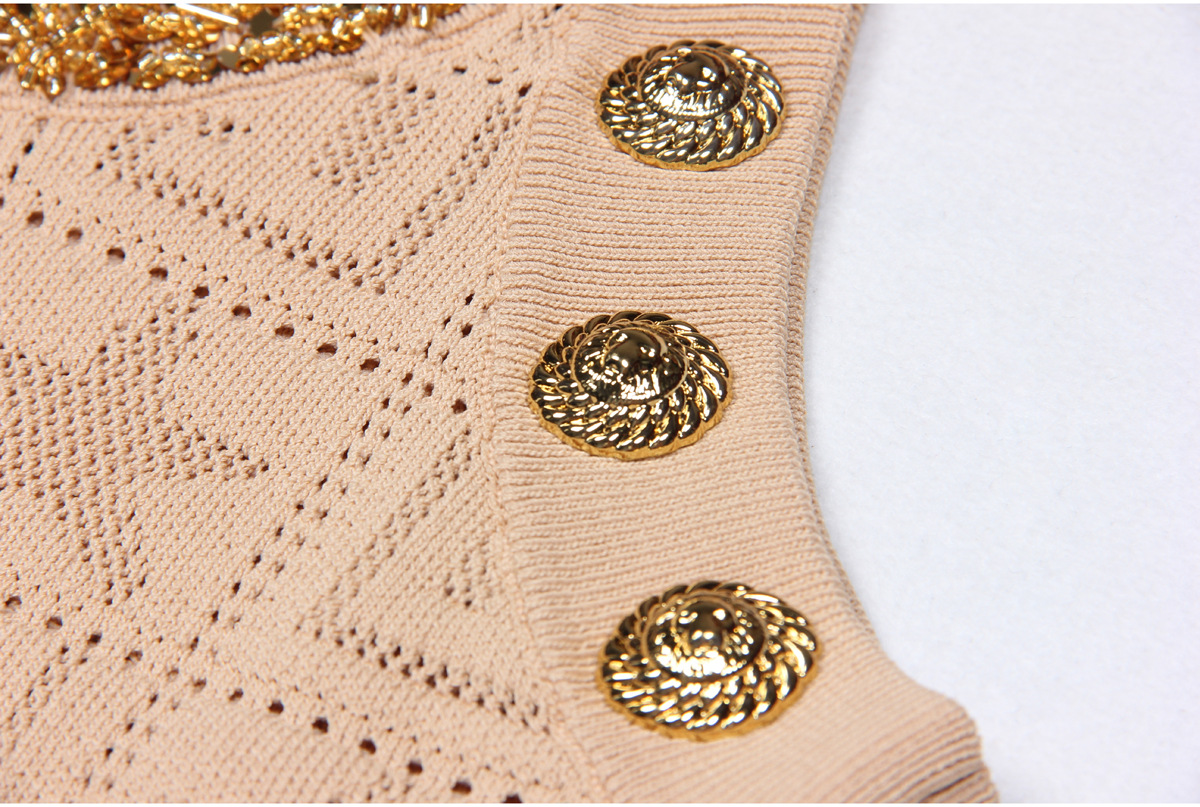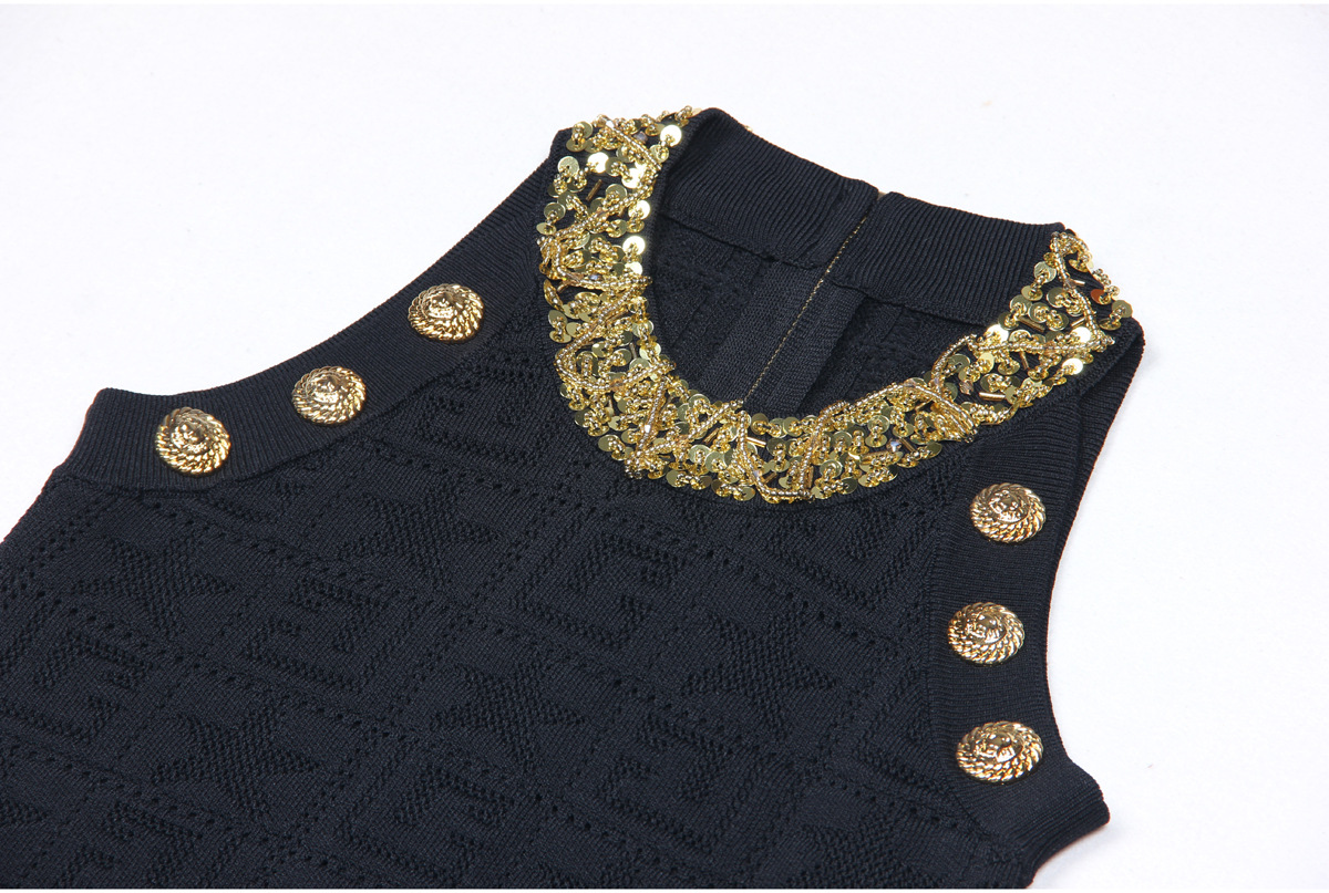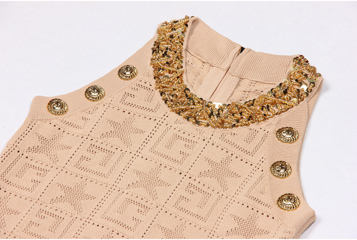 This mini dress from Marseille boasts an elegant design and slim fit, crafted from high-quality jersey fabric. The solid pattern is accentuated by button, sequin, and zipper details, while the crew neckline and sleeveless cut add a unique element. Perfect for daily wear, this bodycon dress features a flattering midi length and is made primarily of viscose, making it lightweight and perfect for summer.