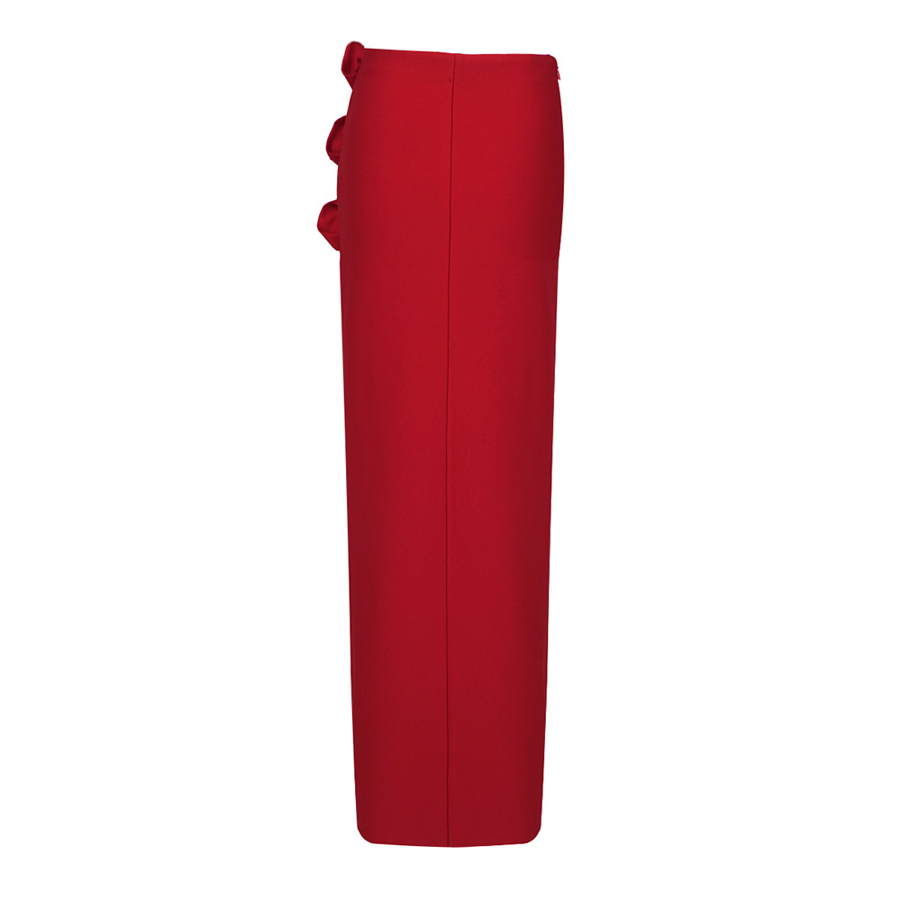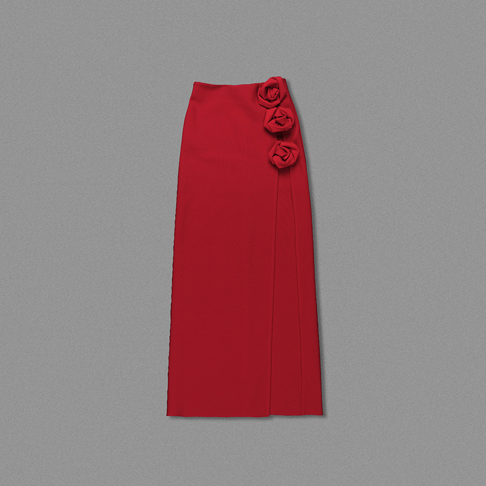 This Rose High Slit Maxi Skirt showcases a seductive style with a loose fit and high rise. Made of durable polyester fabric, this skirt features a solid color and 3D decoration. It is designed in an A-line silhouette with a maxi length and a split element. Perfect for any season, this versatile piece is a must-have for your wardrobe.