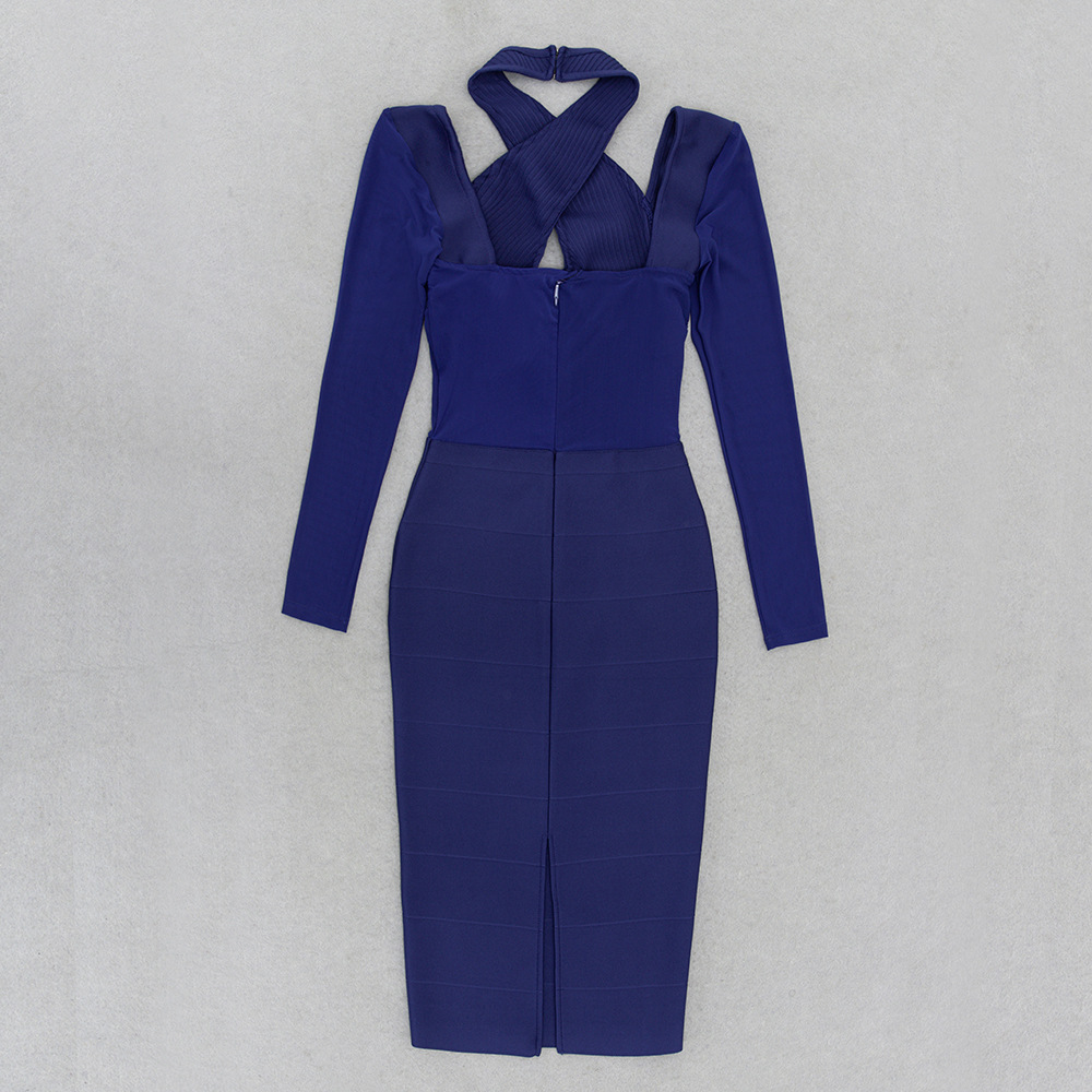 Featuring a slim fit and made of high-quality polyester fabric, this dress showcases a stunning solid pattern and various elements such as a backless design, boning, cutout details, and delicate lace and tulle. Completed with a split and zipper on the back, this dress boasts a halter neckline and long, regular sleeves for a sophisticated look. Perfect for any formal occasion, this bodycon dress is midi-length and suitable for the spring and fall seasons. Made primarily of polyester, this dress is a must-have for any fashion-forward individual.