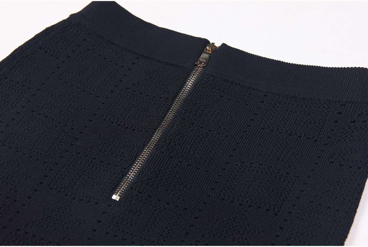 Indulge in the luxurious style of the Silvia Ribbed Knit Skirt. This slim-fitting piece is crafted from a blend of ribbed knit and cotton, providing both comfort and sophistication. Its design features a zipper and a high rise for a sleek, figure-flattering look. Perfect for summer, this pencil mini skirt is made with premium ribbed knit cotton and exudes elegance and exclusivity.