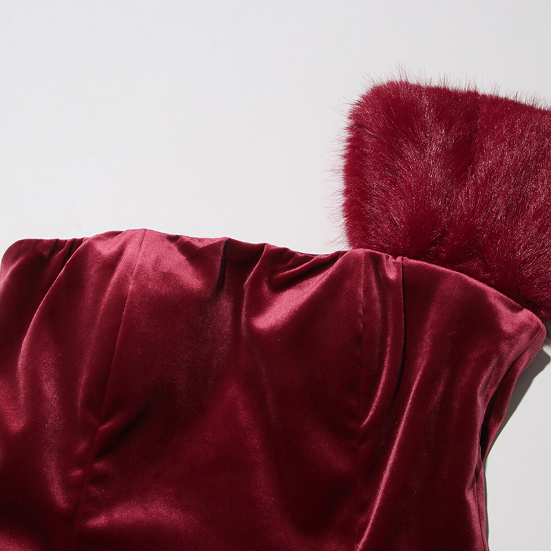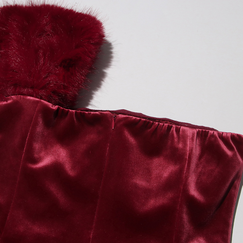 This luxurious velvet mini dress set brings timeless elegance to any occasion. The sleek bodycon silhouette flatters your figure while the asymmetric neckline adds contemporary sophistication. Shimmering rhinestone accents elevate the design with subtle sparkle, and the secure zipper closure ensures polished wear. The included gloves complete the refined look perfectly. Crafted from quality velvet, this versatile piece transitions seamlessly from formal events to upscale celebrations year-round. A complete styling solution that combines luxury texture with modern design and enduring appeal.