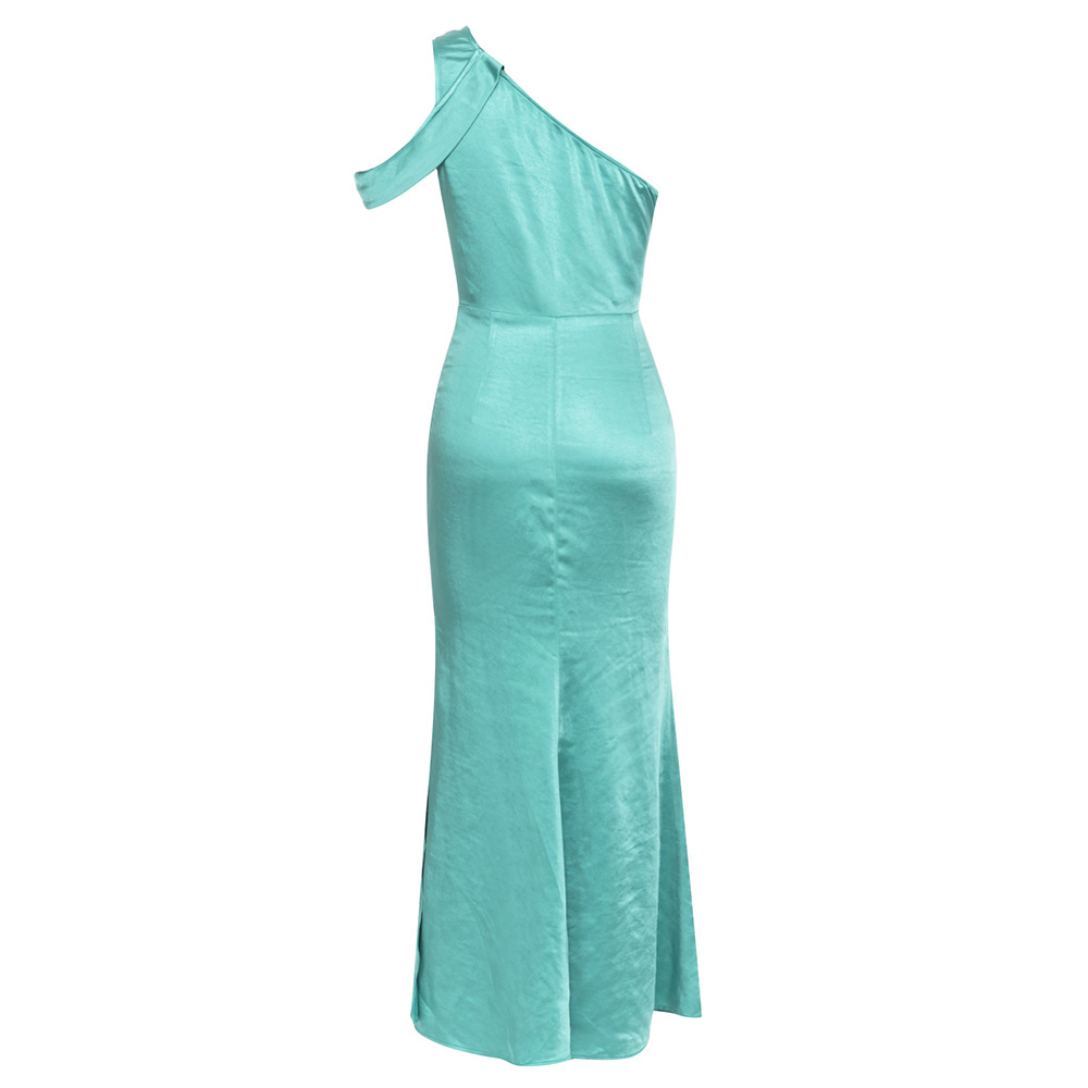 - Dress up in this flirty, slim-fit stunner. With an offbeat one-shoulder design and unique cutouts, this solid satin midi dress is perfect for any formal event. Made with luxurious polyester fabric, it's a must-have for any fashion-forward wardrobe. Get ready to turn heads in this sexy, yet playful, split dress.