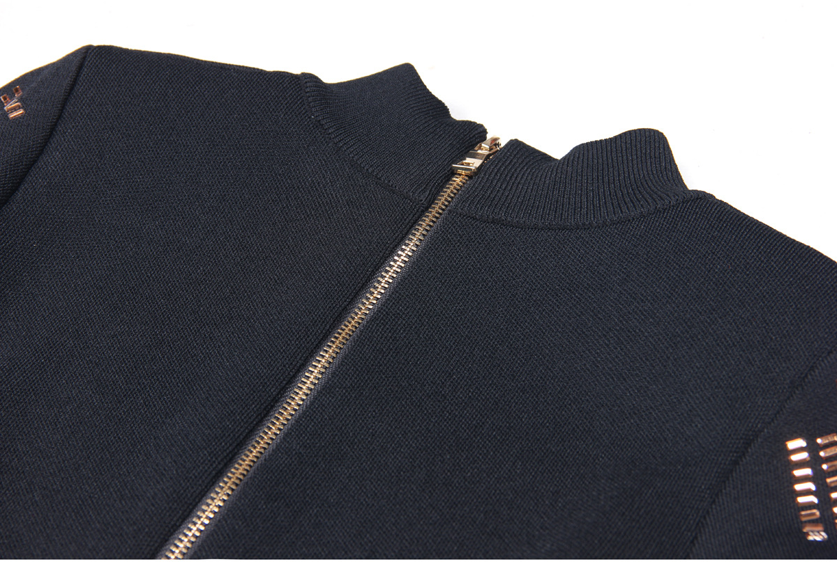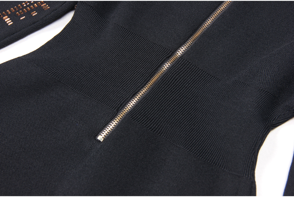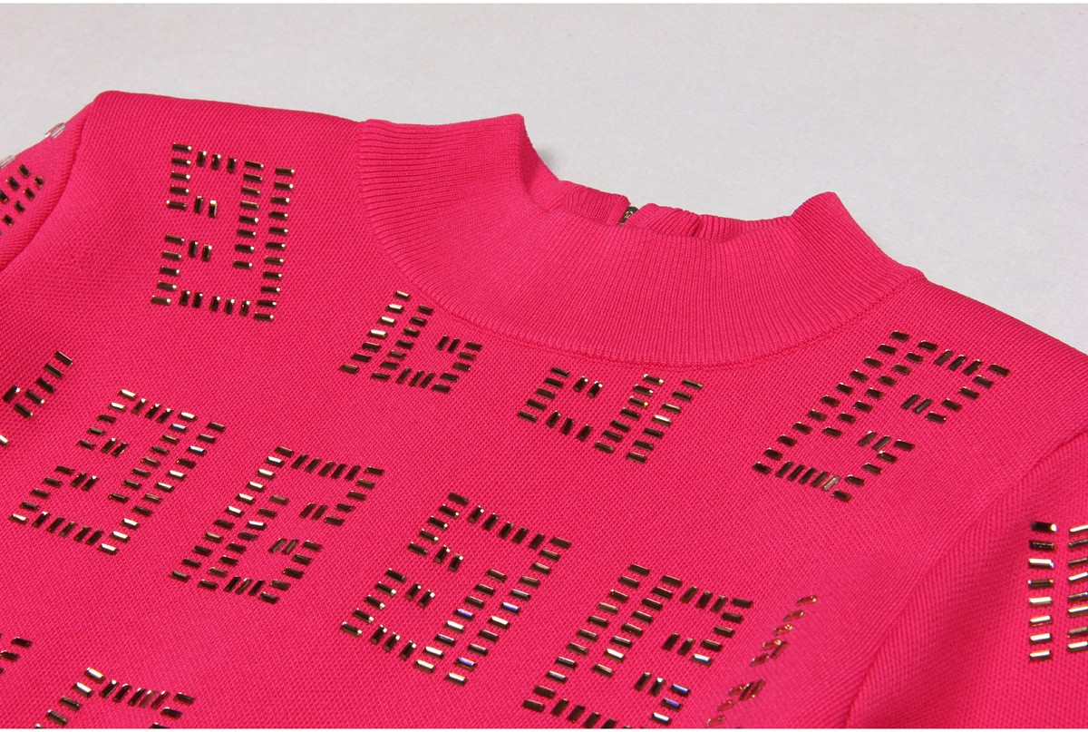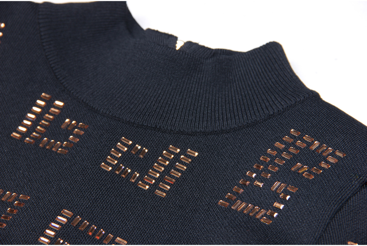 This midi dress boasts a slim, form-fitting silhouette, perfect for daily wear during the spring and fall seasons. Made with high-quality polyester fabric, this solid-colored dress features a stand collar neckline and regular fit sleeves. The added elements of rhinestones and a zipper give this dress a touch of elegance, making it a must-have for any fashion-forward individual.