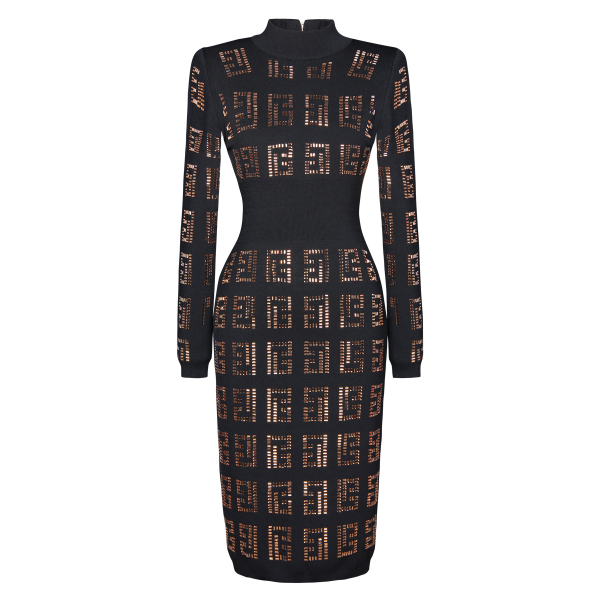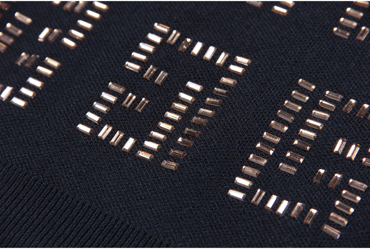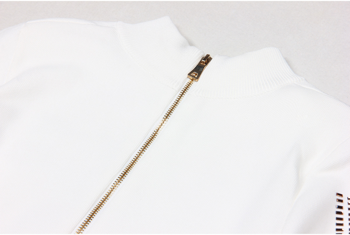 This midi dress boasts a slim, form-fitting silhouette, perfect for daily wear during the spring and fall seasons. Made with high-quality polyester fabric, this solid-colored dress features a stand collar neckline and regular fit sleeves. The added elements of rhinestones and a zipper give this dress a touch of elegance, making it a must-have for any fashion-forward individual.