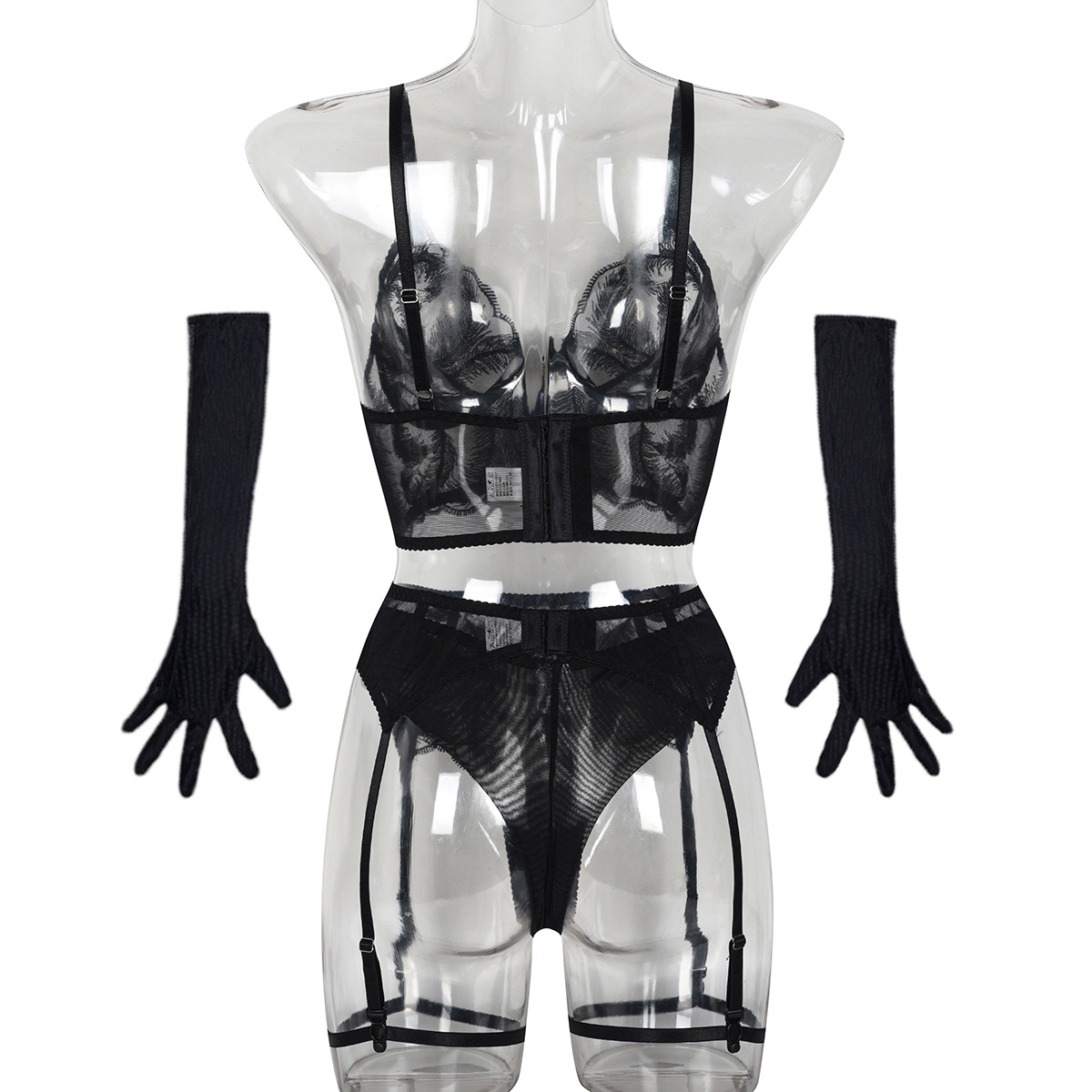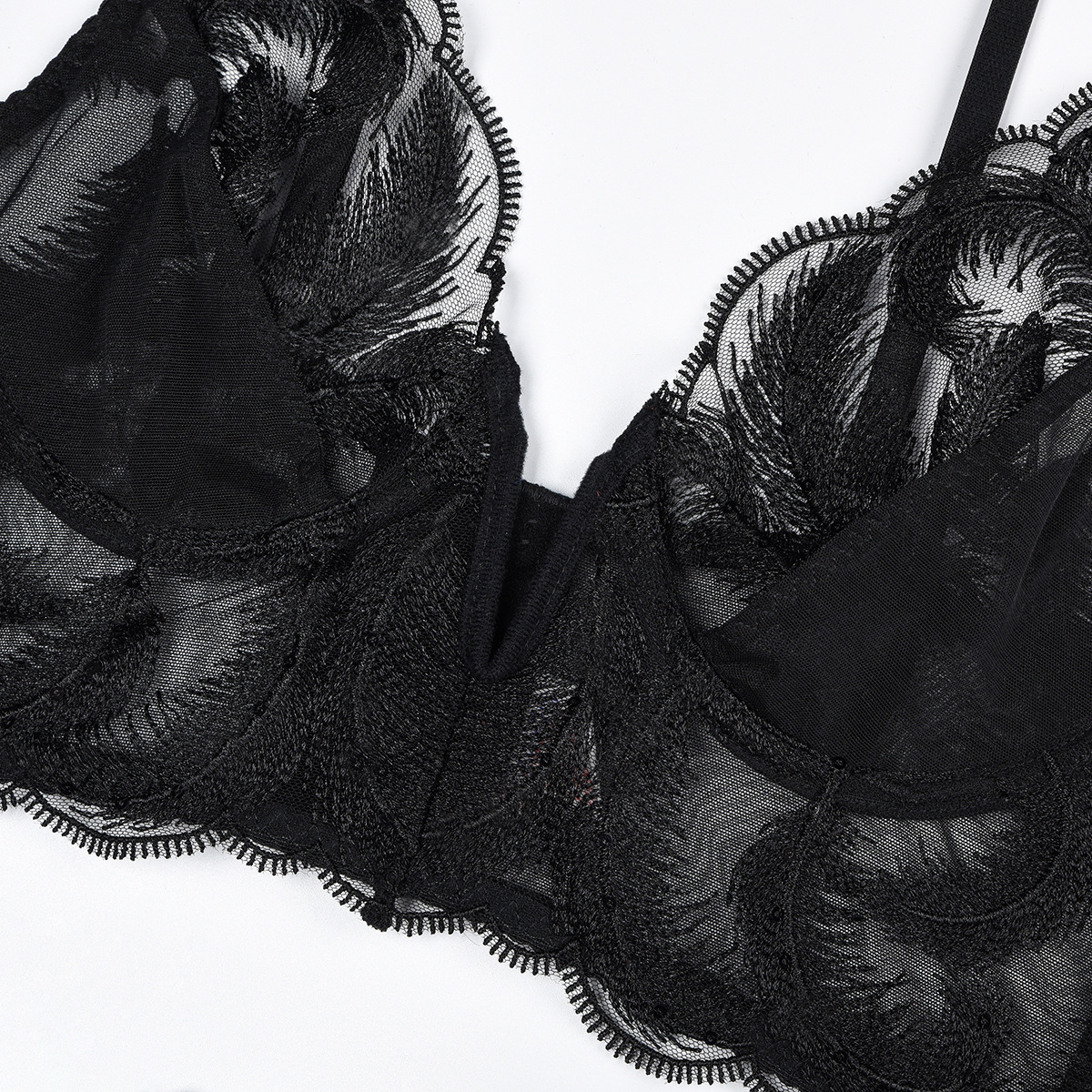 - Цей розкішний комплект нижньої білизни з оніксу випромінює вишуканість і елегантність. Зі складною вишивкою та делікатними елементами мережива/тюлю/сітки цей комплект бюстгальтера та трусиків виготовлений із високоякісної поліестерової тканини. Ідеальний для будь-якої пори року, його якісний матеріал пропонує вічну привабливість, яка підніме ваш гардероб на нову висоту.